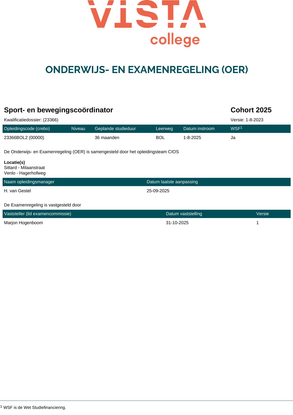 Sport- en bewegingscoördinator 23366BOL2 in cohort 2025-2026