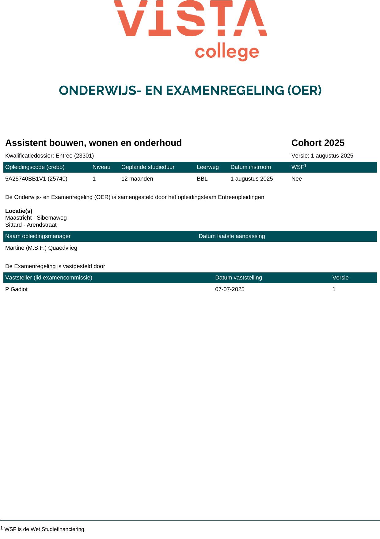 Assistent bouwen, wonen en onderhoud 5A25740BB1V1 in cohort 2025-2026