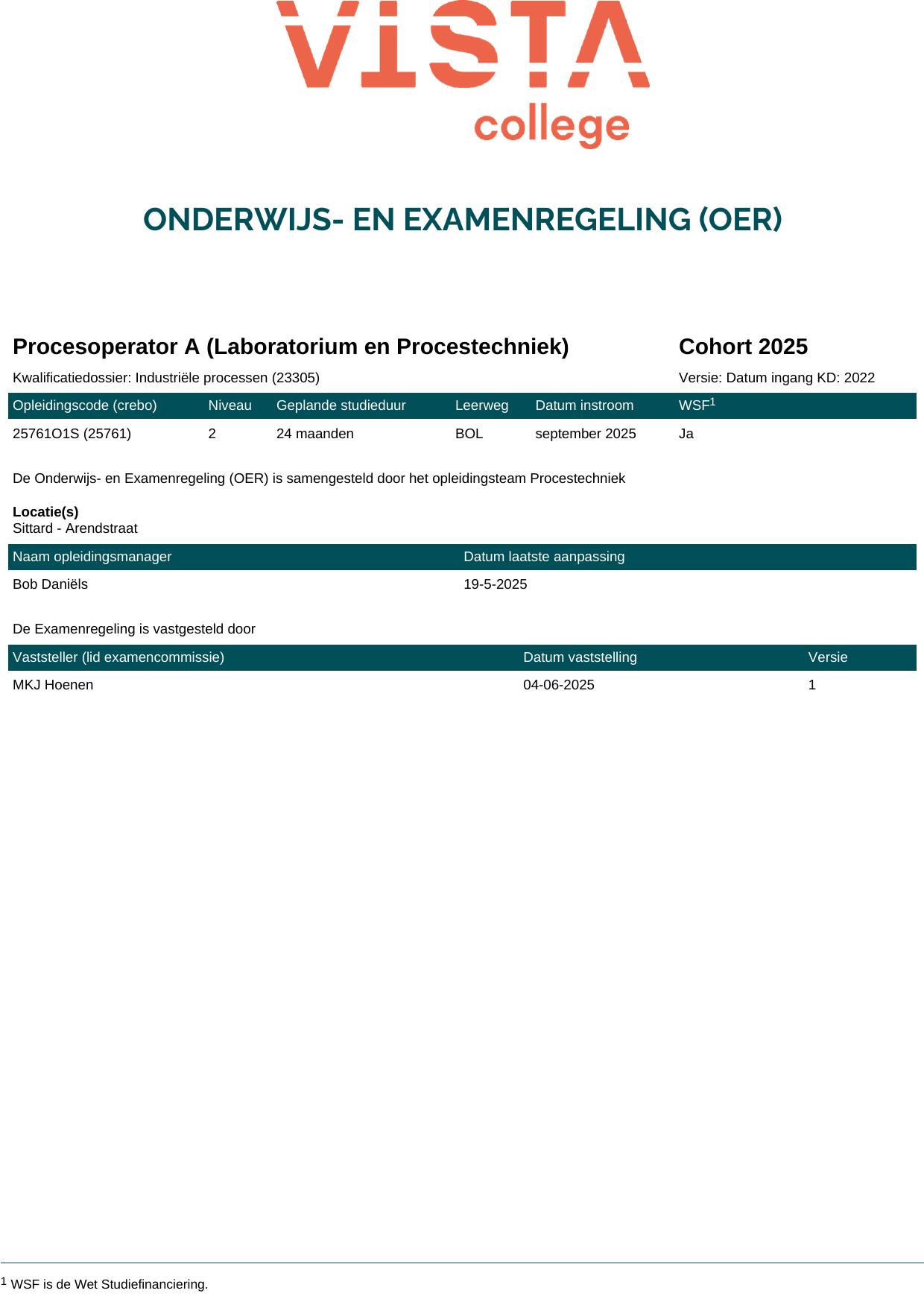 Procesoperator A (Laboratorium en Procestechniek) 25761O1S in cohort 2025-2026