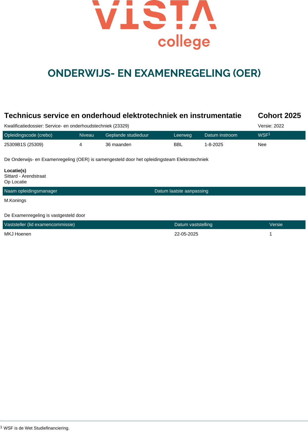 Technicus service en onderhoud elektrotechniek en instrumentatie 25309B1S in cohort 2025-2026