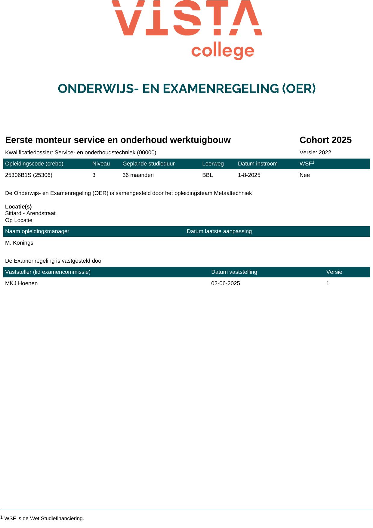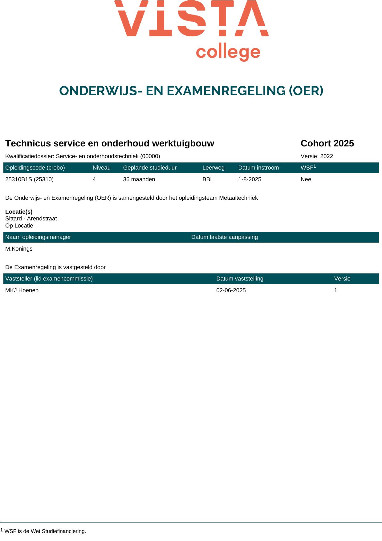 Technicus service en onderhoud werktuigbouw 25310B1S in cohort 2025-2026