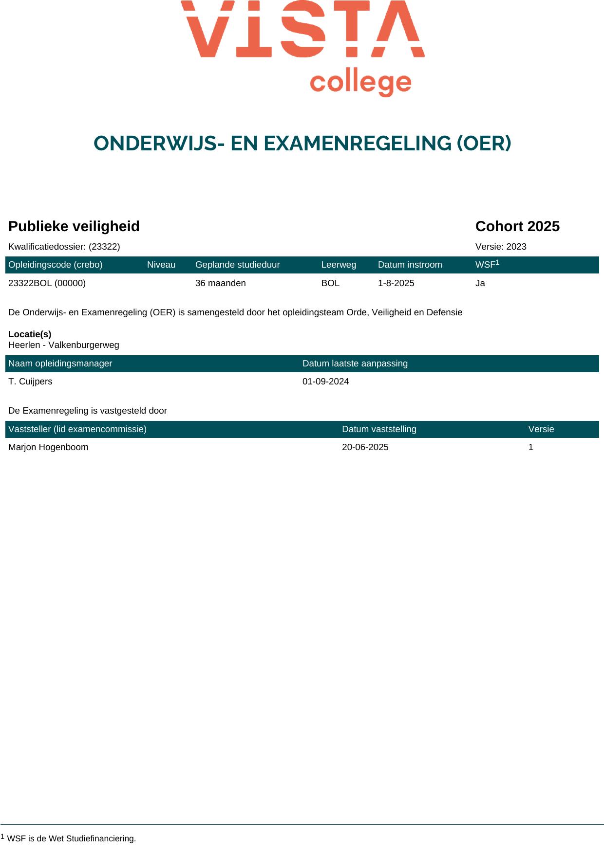 Publieke veiligheid 23322BOL in cohort 2025-2026