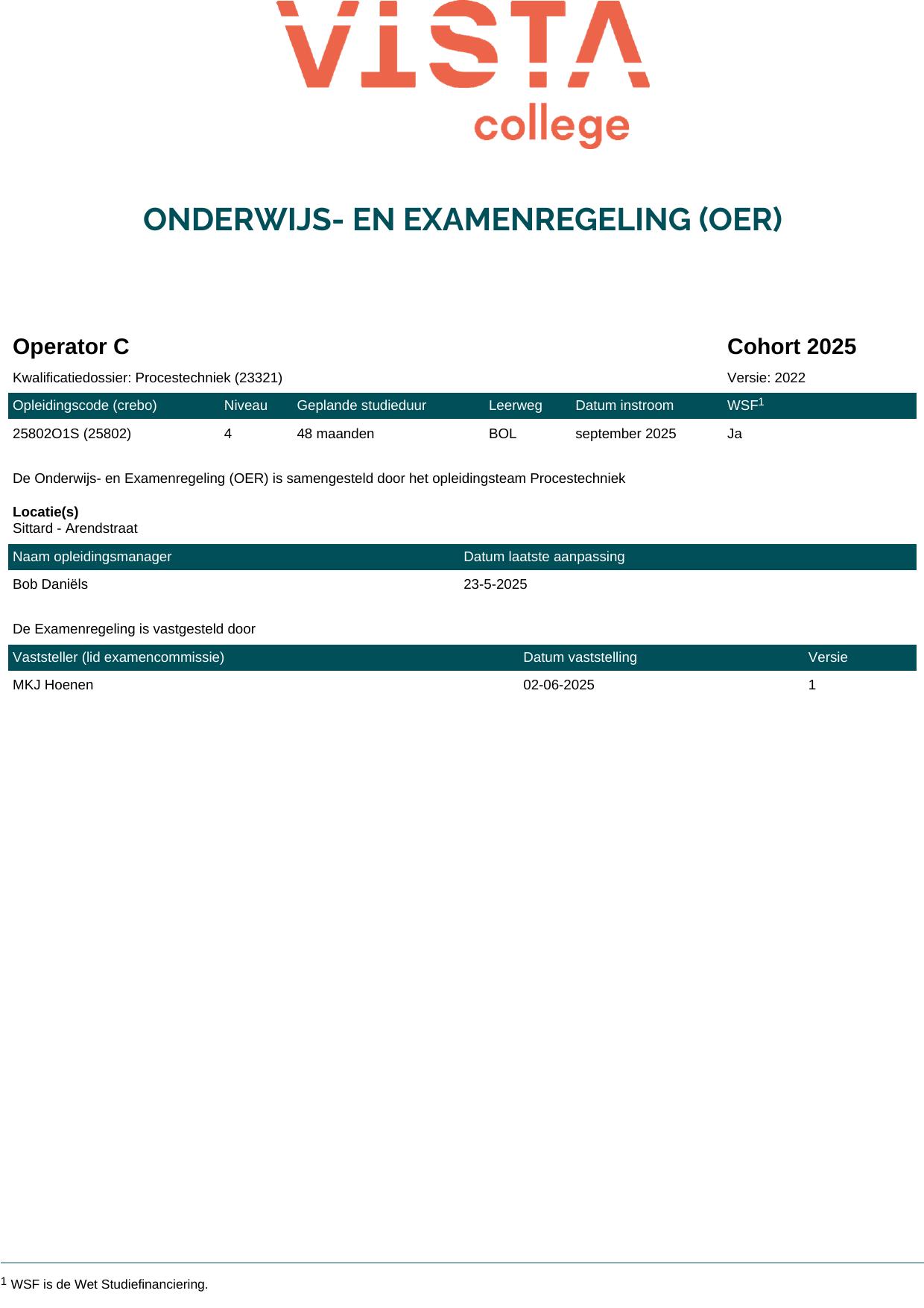 Mechanisch operator B 25760B1E in cohort 2025-2026