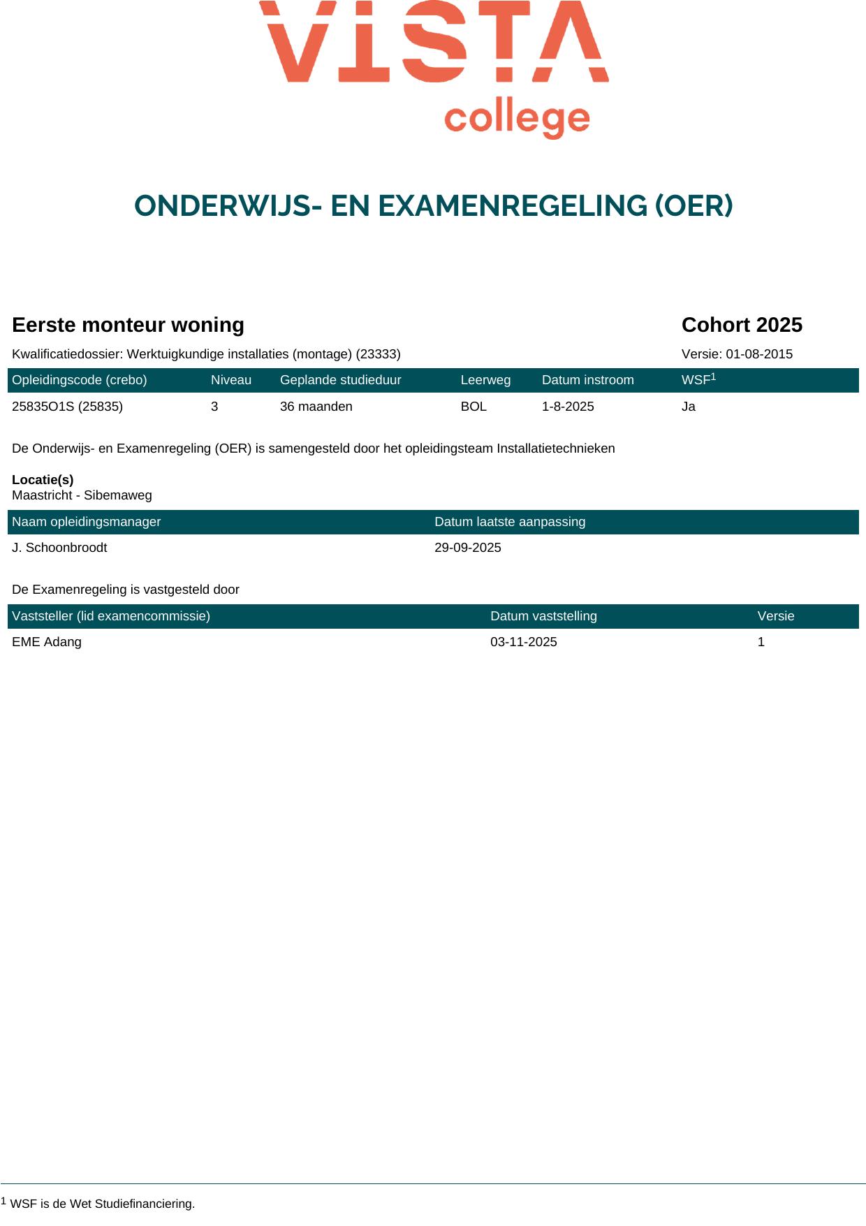 Eerste monteur woning 25835O1S in cohort 2025-2026