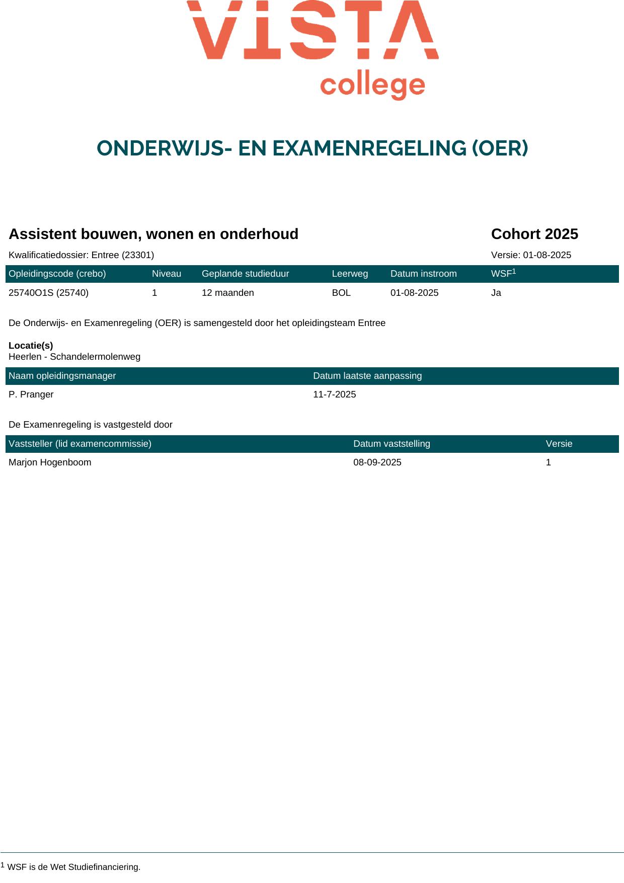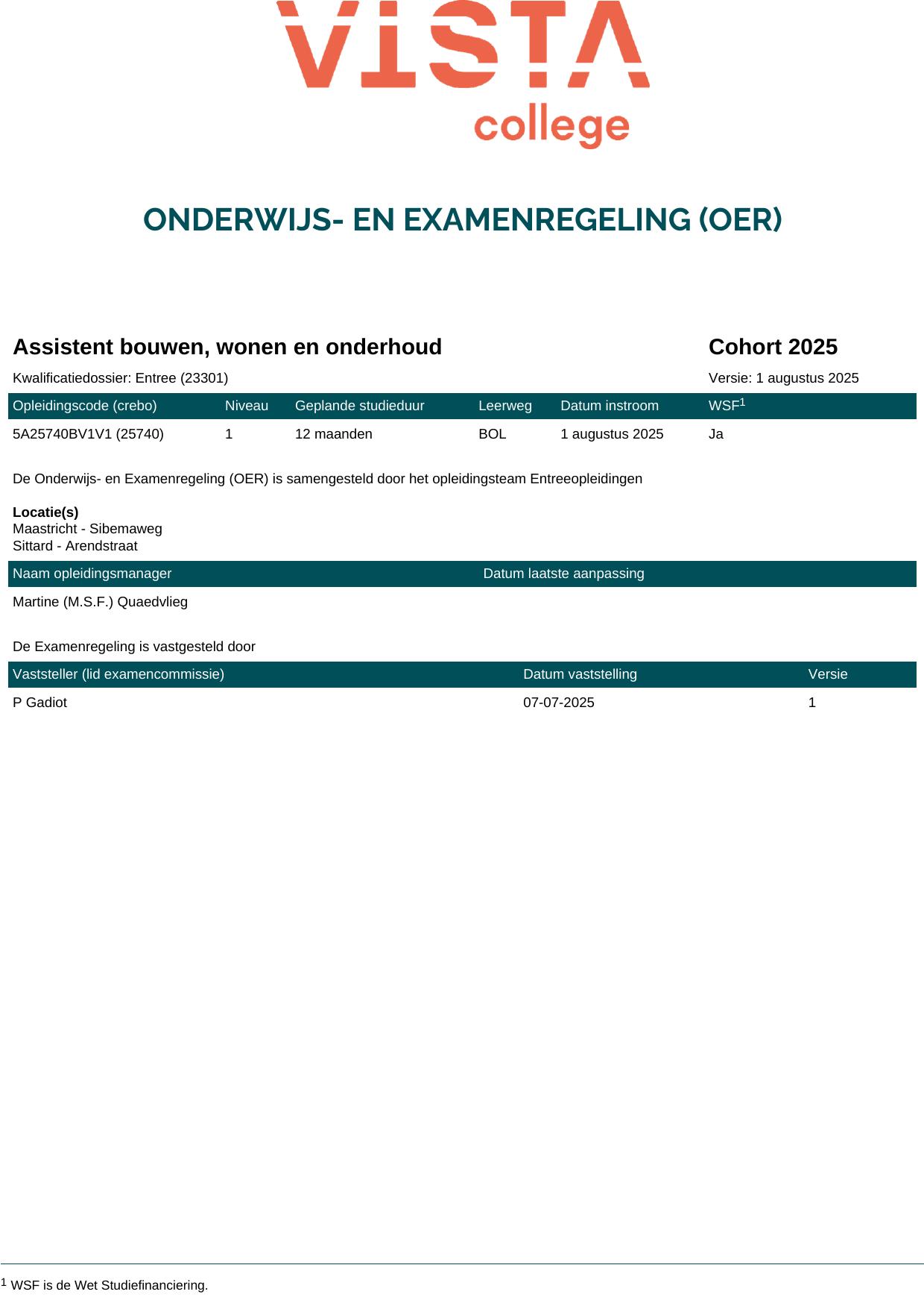 Assistent bouwen, wonen en onderhoud 5A25740BV1V1 in cohort 2025-2026