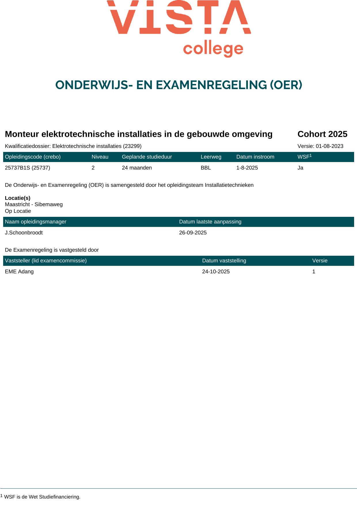 Monteur elektrotechnische installaties in de gebouwde omgeving 25737O1S in cohort 2025-2026