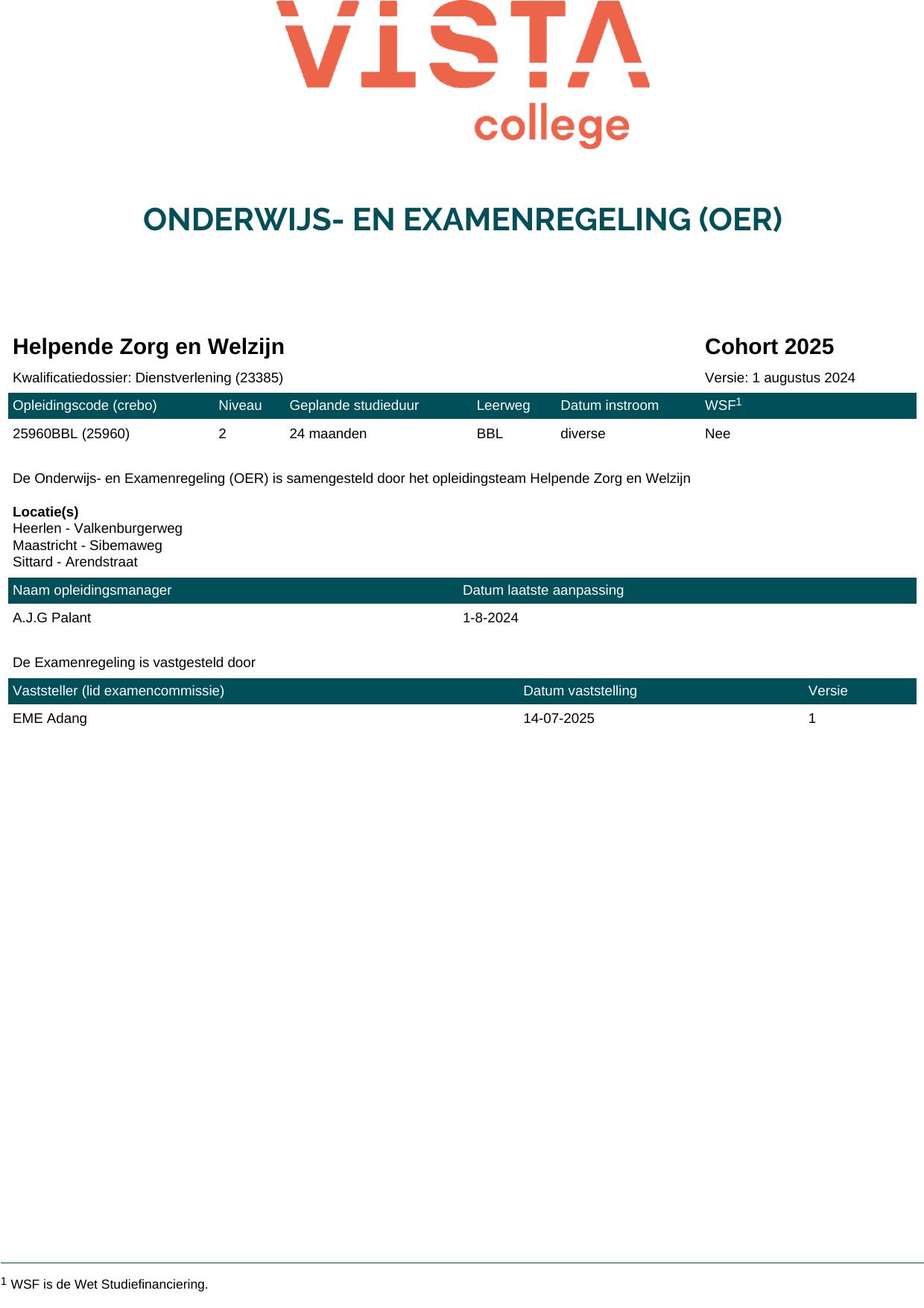 Helpende Zorg en Welzijn 25960BBL in cohort 2025-2026