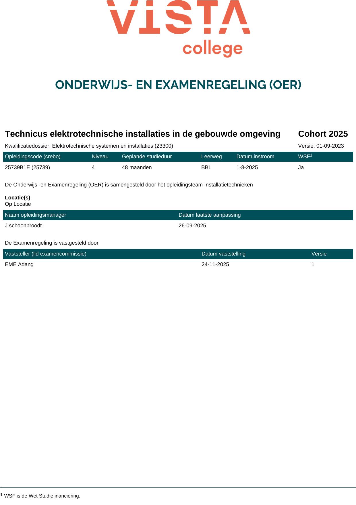 Technicus elektrotechnische installaties in de gebouwde omgeving 25739O1S in cohort 2025-2026