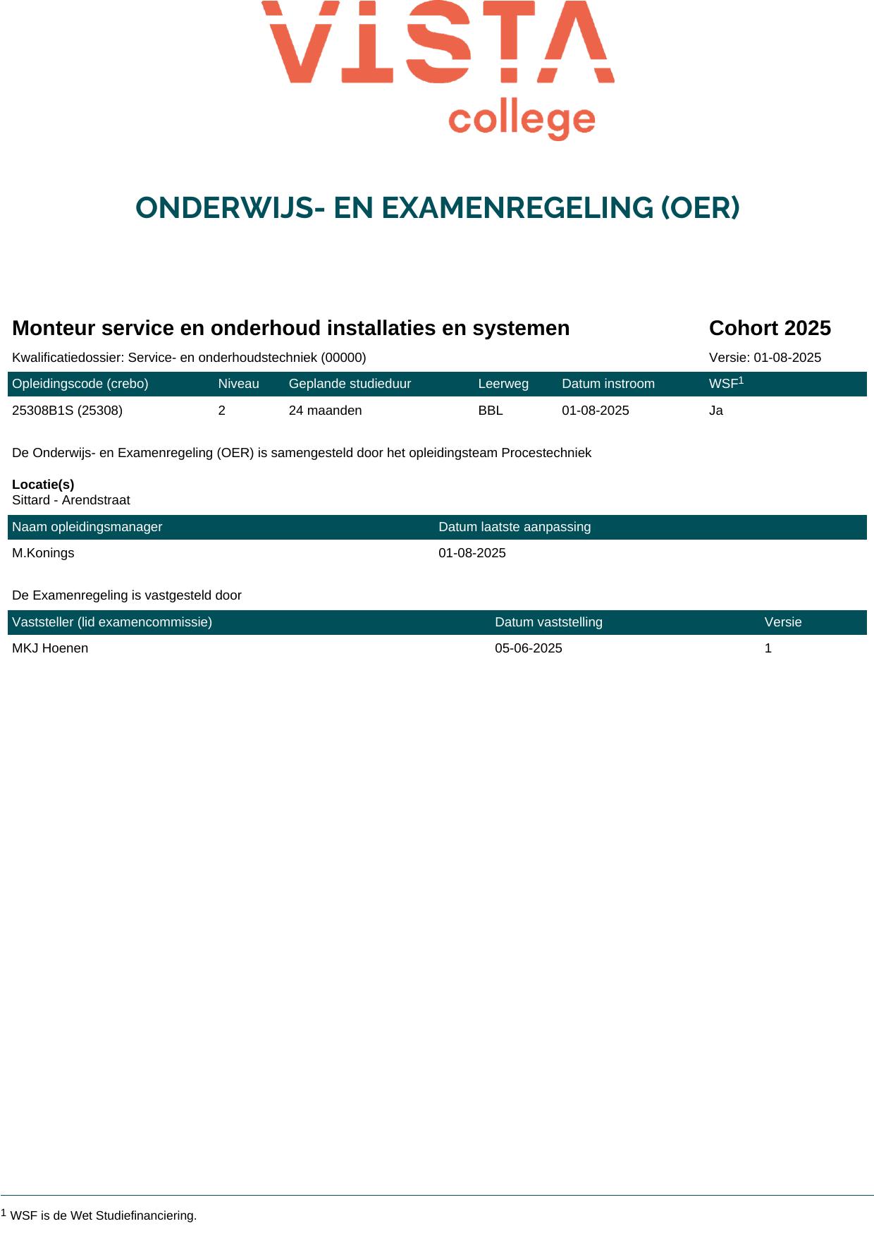 Monteur service en onderhoud installaties en systemen 25308B1S in cohort 2025-2026