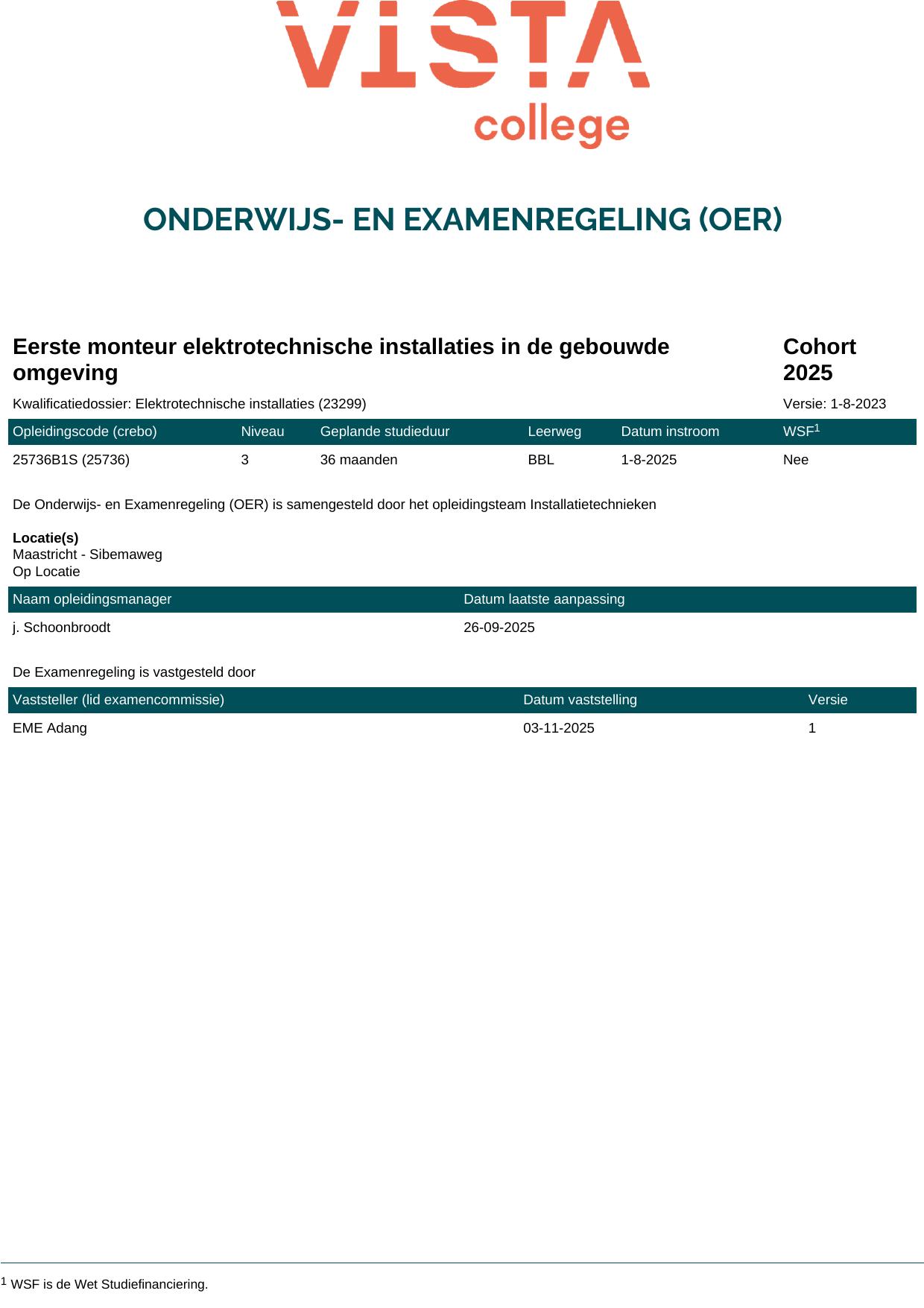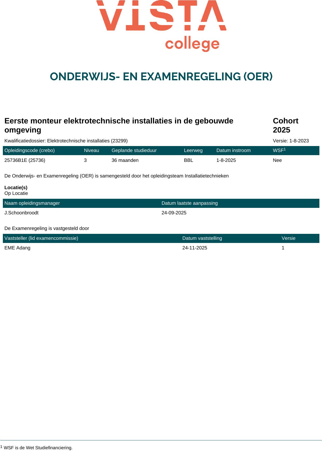 Eerste monteur elektrotechnische installaties in de gebouwde omgeving 25736O1S in cohort 2025-2026