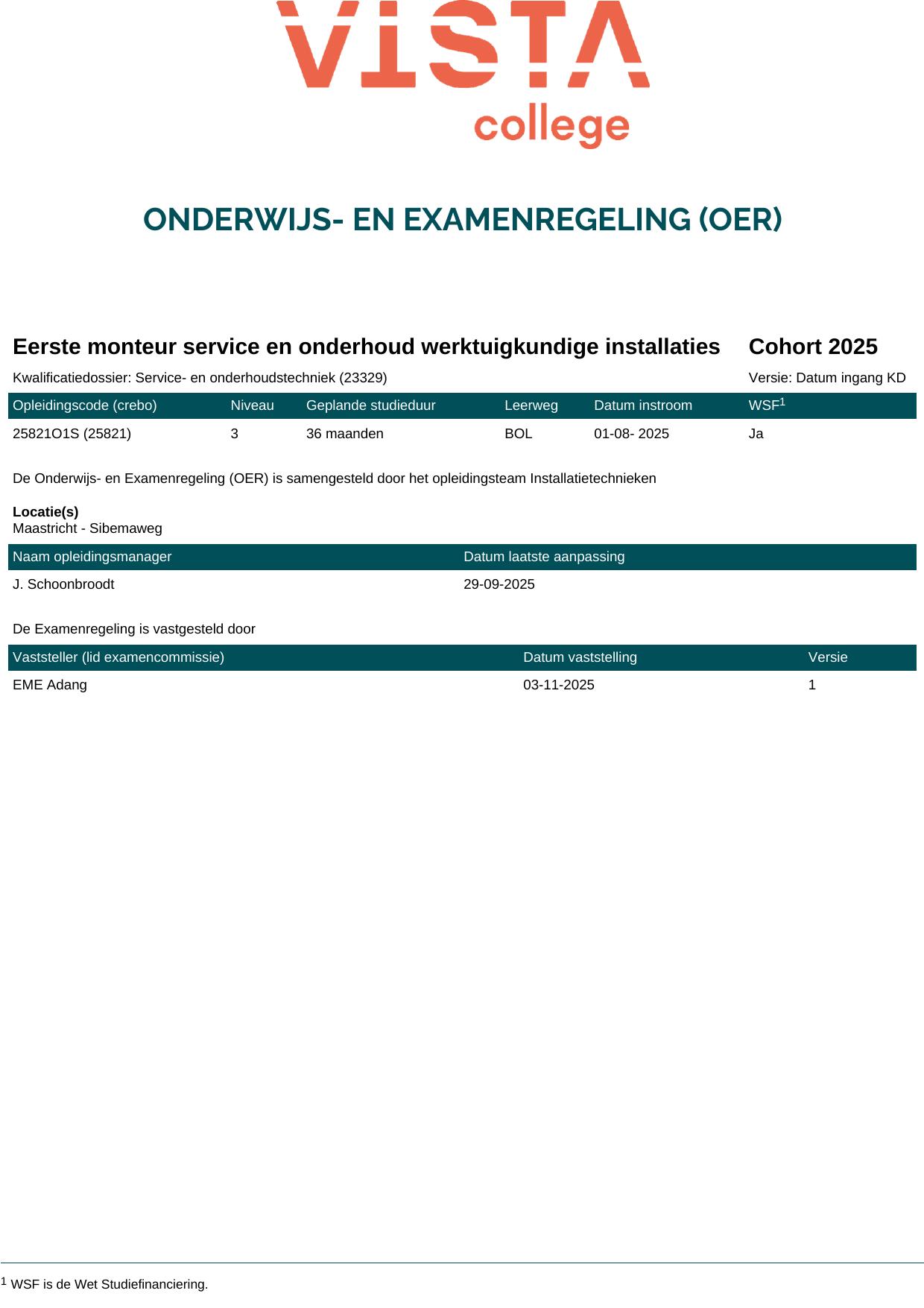 Eerste monteur service en onderhoud werktuigkundige installaties 25821O1S in cohort 2025-2026