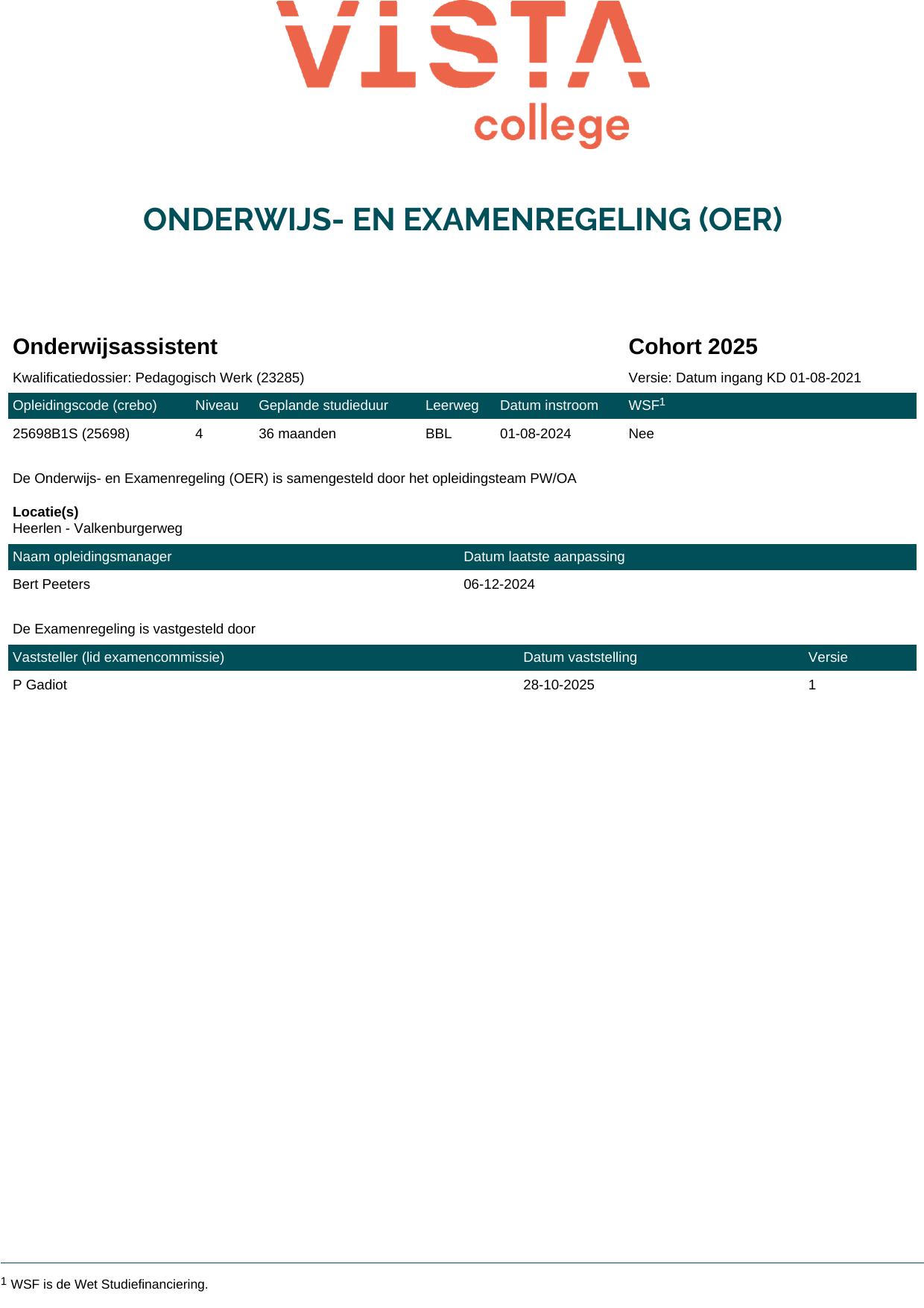Onderwijsassistent 25698B1S in cohort 2025-2026