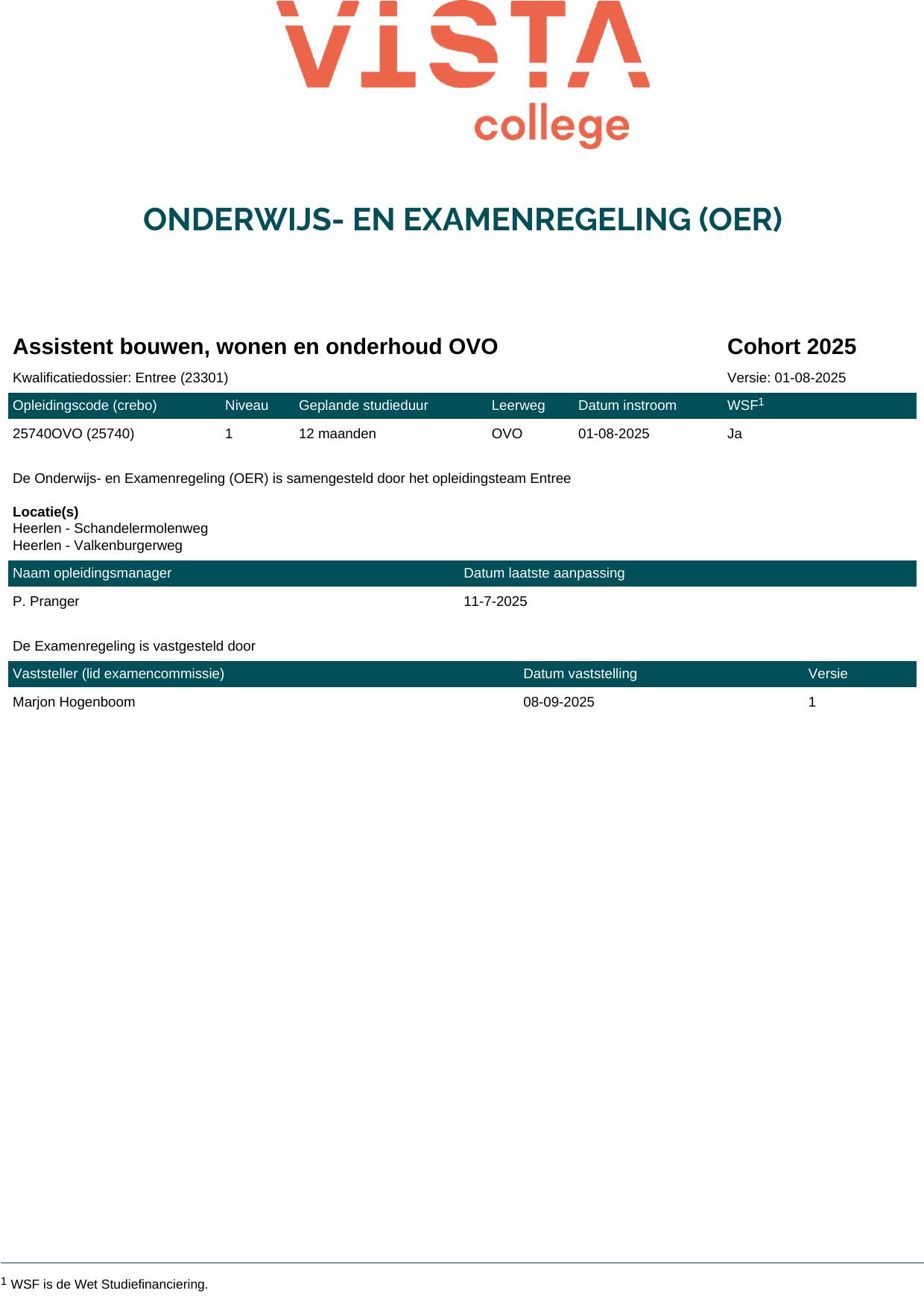 Assistent bouwen, wonen en onderhoud OVO 25740OVO in cohort 2025-2026