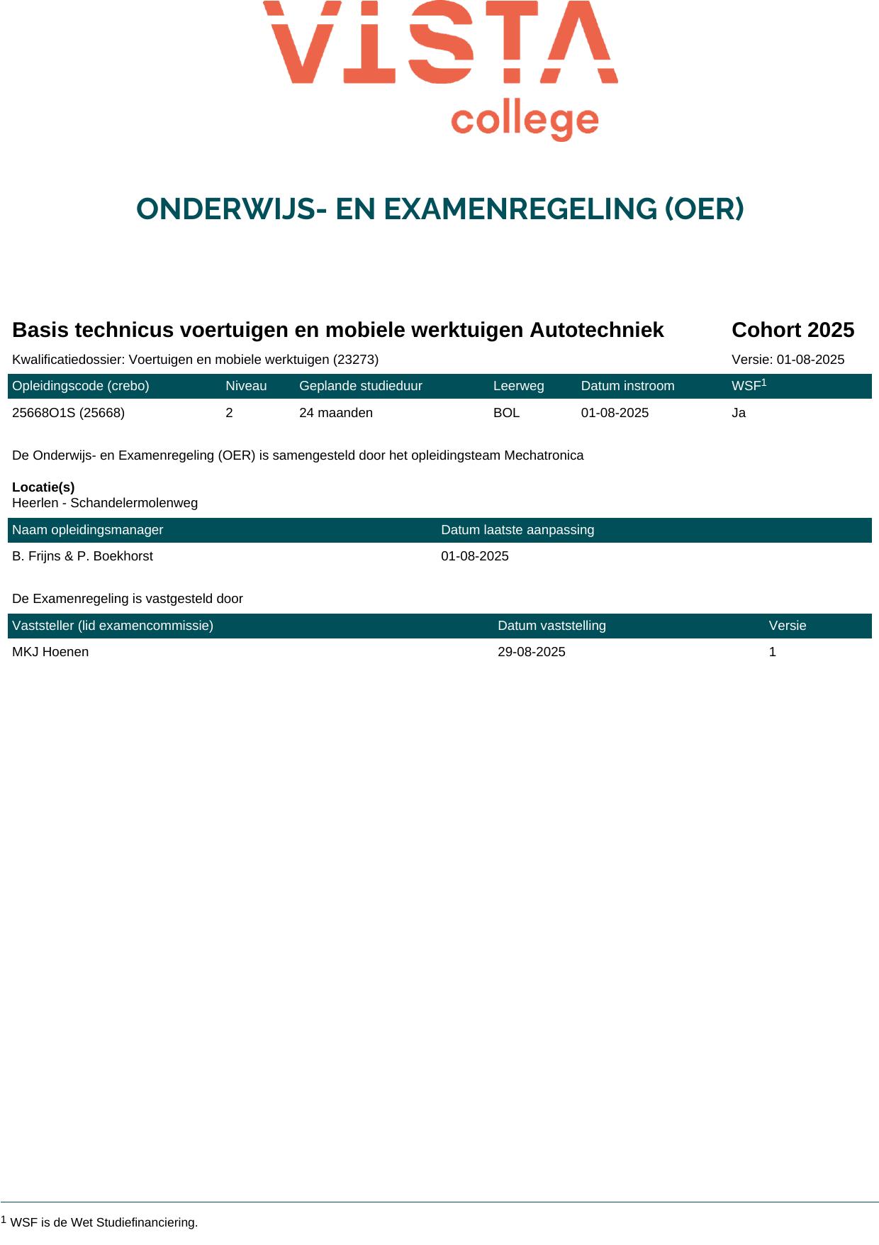 Basis technicus voertuigen en mobiele werktuigen Autotechniek 25668B1S in cohort 2025-2026
