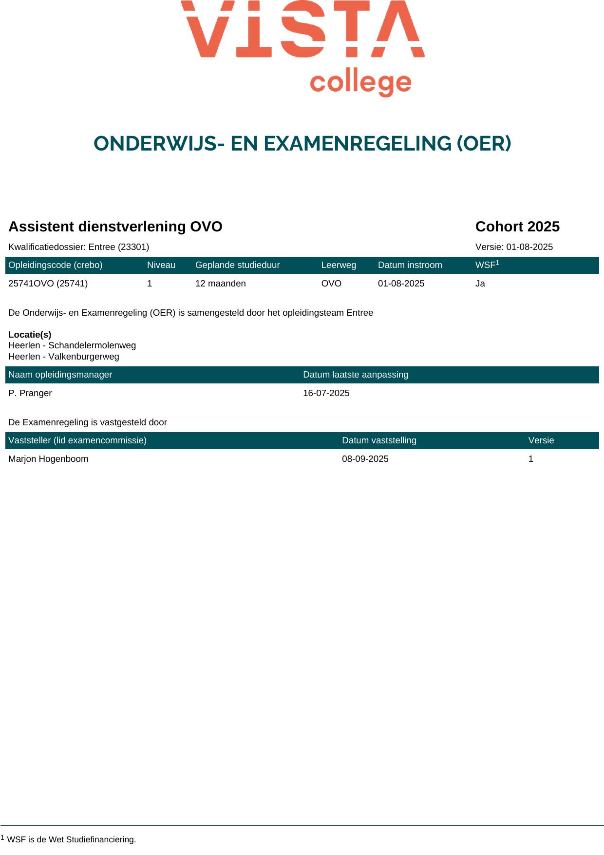 Assistent dienstverlening 25741O1S in cohort 2025-2026