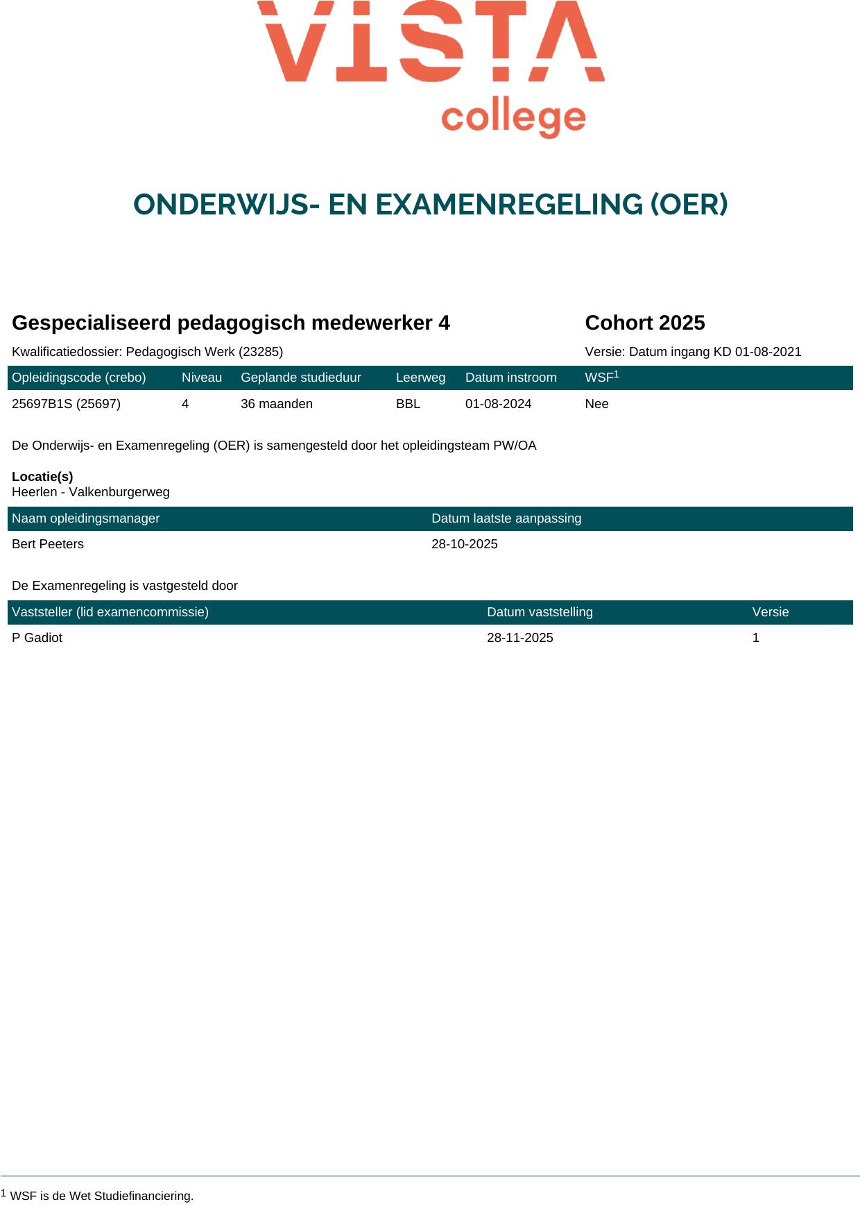 Gespecialiseerd pedagogisch medewerker 4 25697B1S in cohort 2025-2026