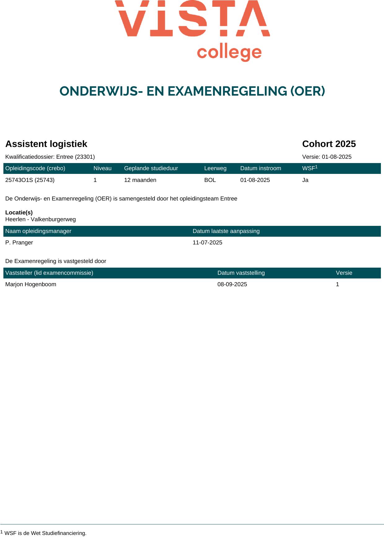 Assistent logistiek 25743O1S in cohort 2025-2026