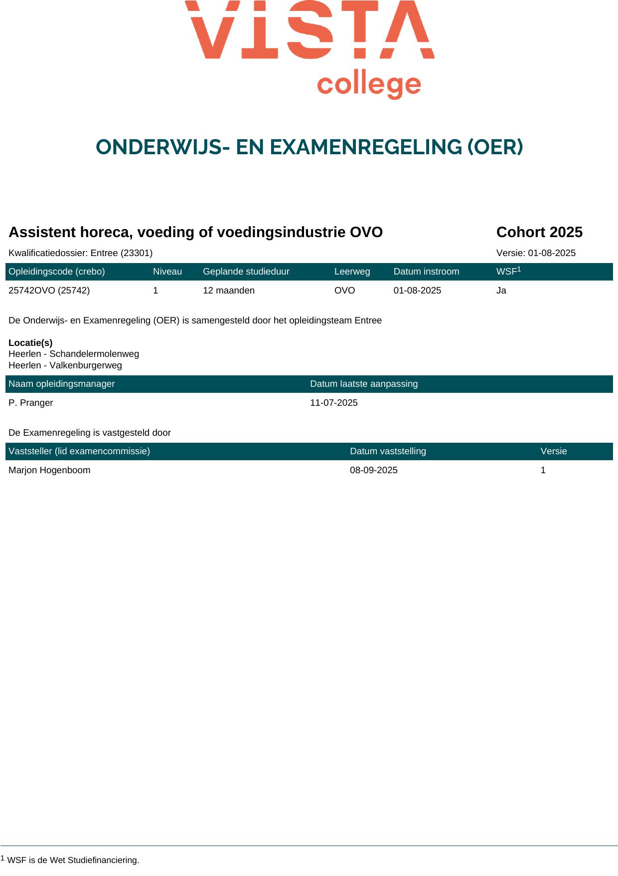 Assistent horeca, voeding of voedingsindustrie OVO 25742OVO in cohort 2025-2026
