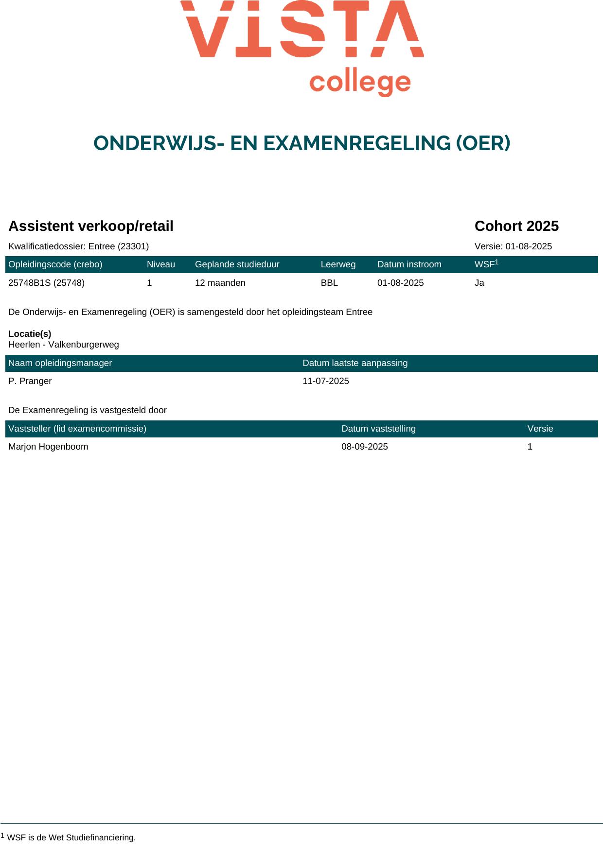 Assistent verkoop/retail 25748B1S in cohort 2025-2026