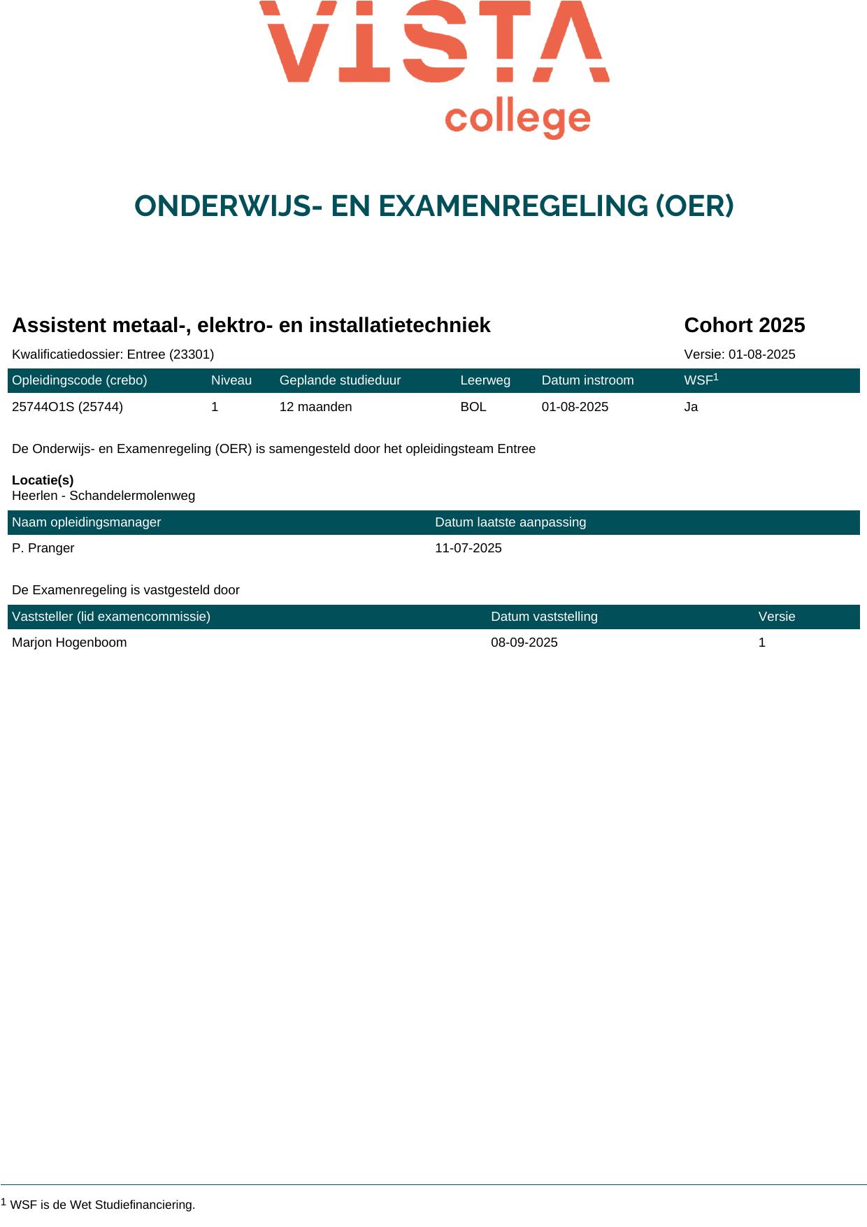 Assistent metaal-, elektro- en installatietechniek 25744O1S in cohort 2025-2026