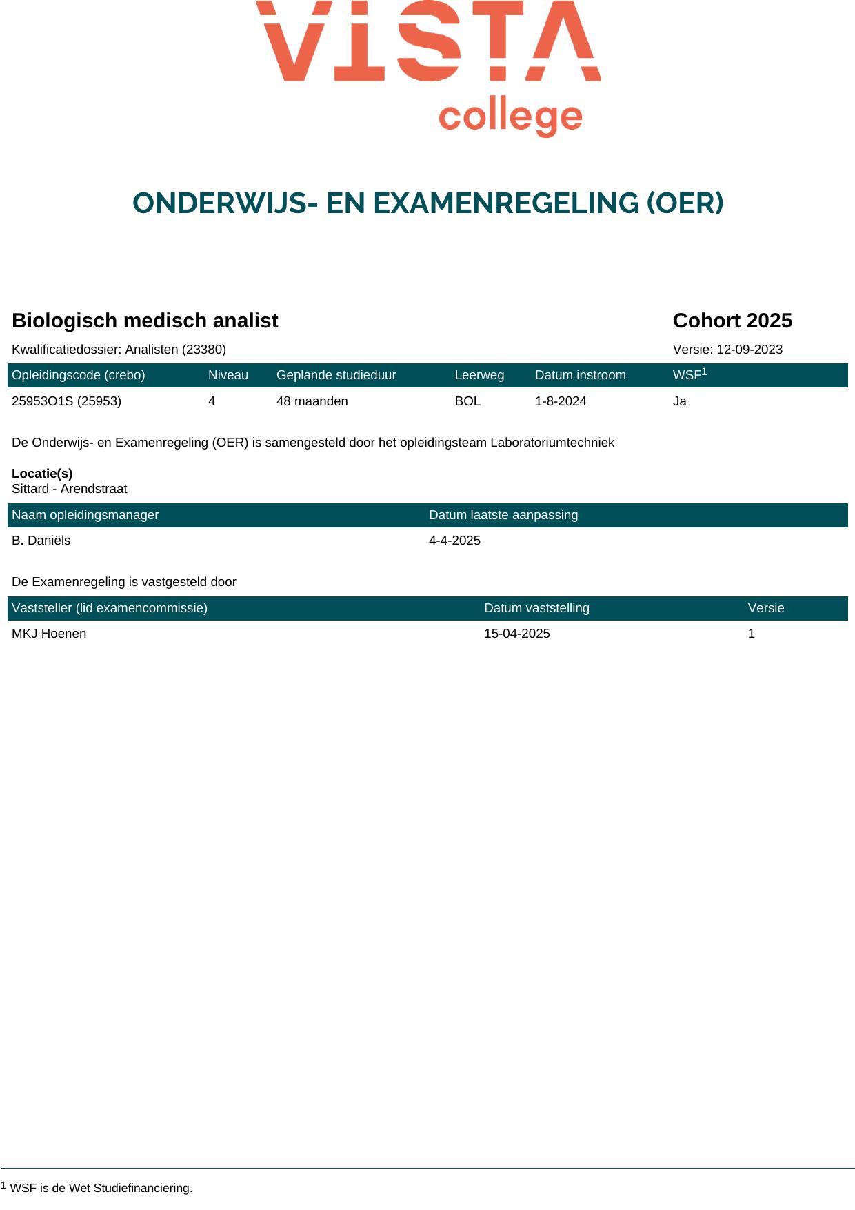 Biologisch medisch analist 25953O1S in cohort 2025-2026