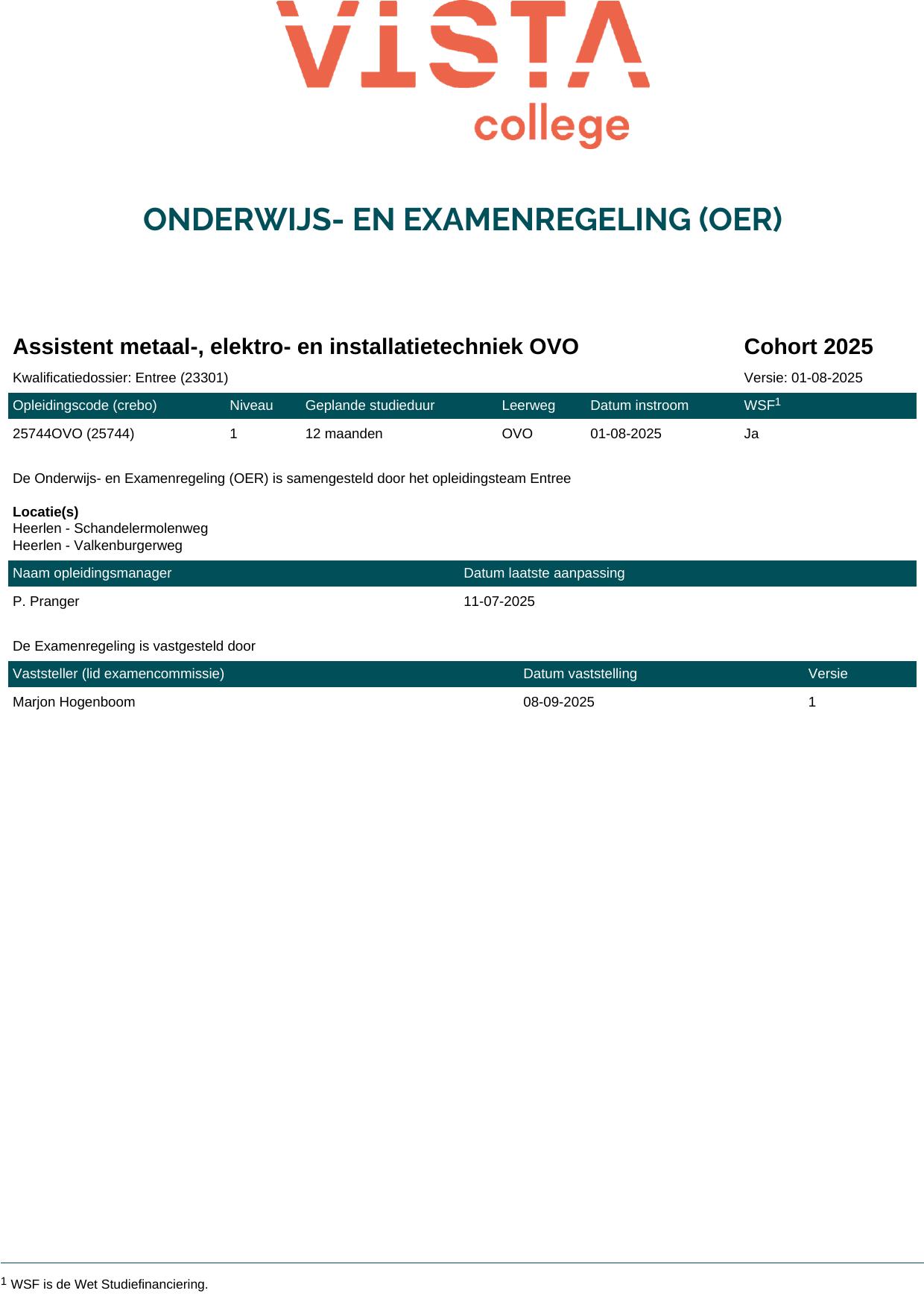 Assistent metaal-, elektro- en installatietechniek OVO 25744OVO in cohort 2025-2026