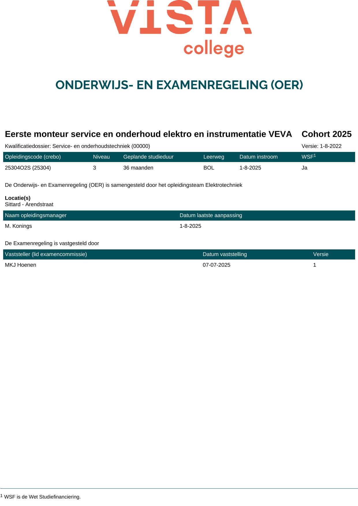 Eerste monteur service en onderhoud elektro en instrumentatie VEVA 25304O2S in cohort 2025-2026
