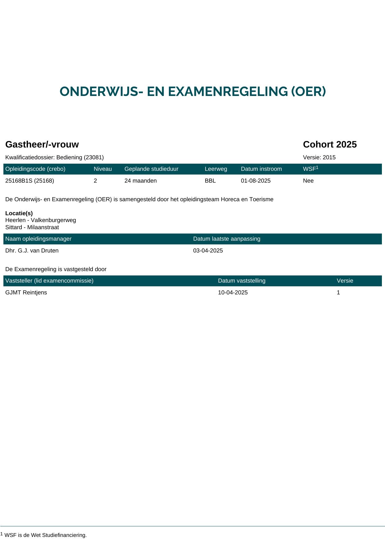 Gastheer/-vrouw 25168B1S in cohort 2025-2026