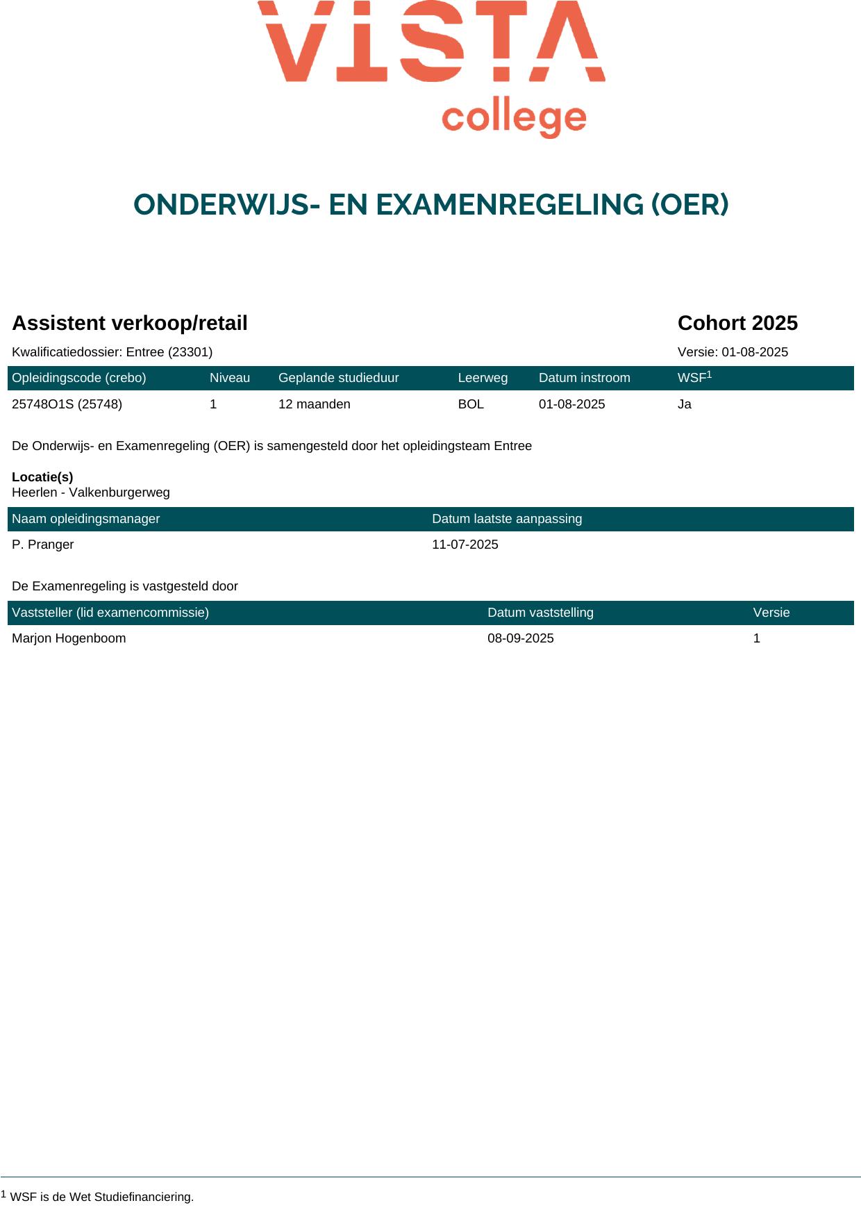 Assistent verkoop/retail 25748O1S in cohort 2025-2026