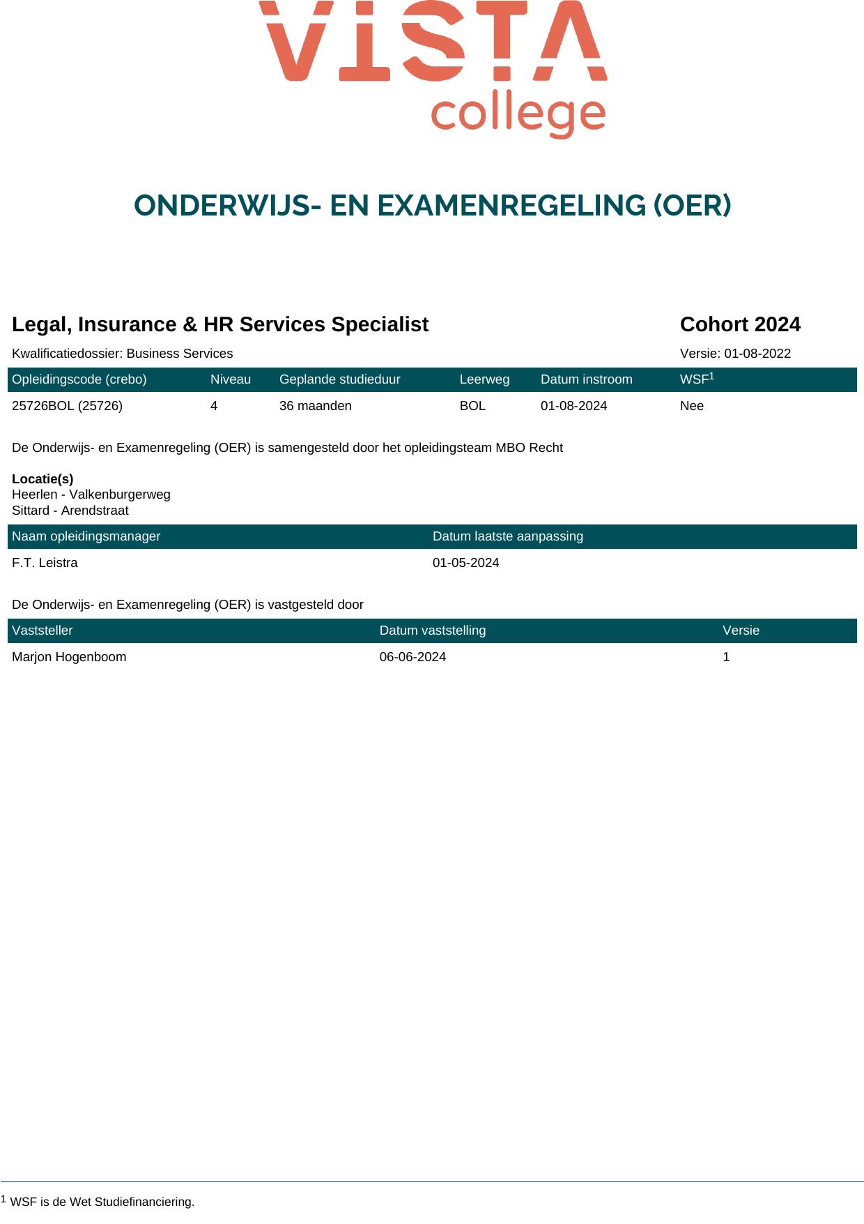 Legal, Insurance & HR Services Specialist 25726BOL in cohort 2024-2025
