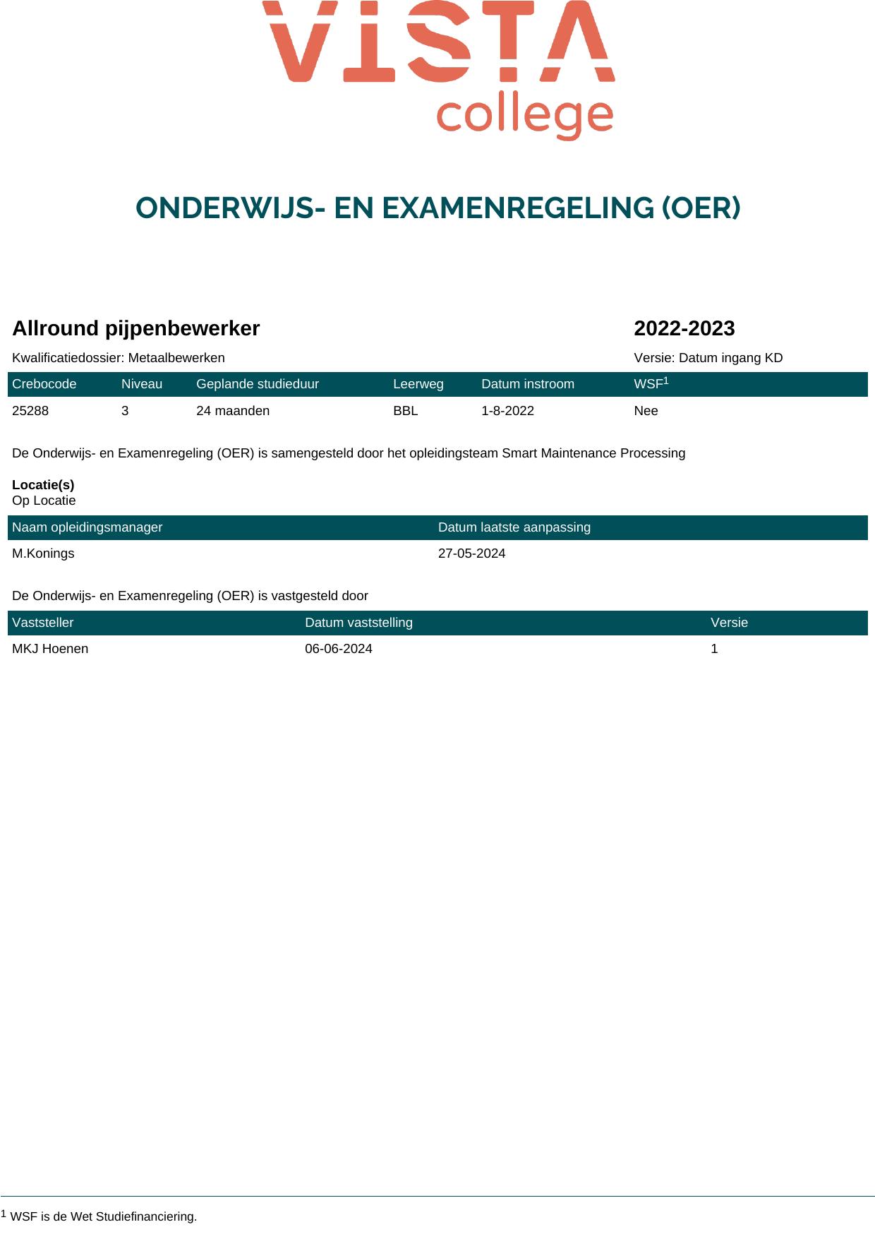 Allround pijpenbewerker 25288B1S in cohort 2022-2023