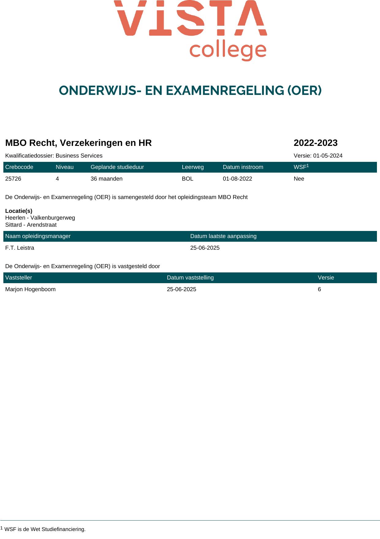 Leidinggevende leisure & hospitality 25646BOL in cohort 2024-2025