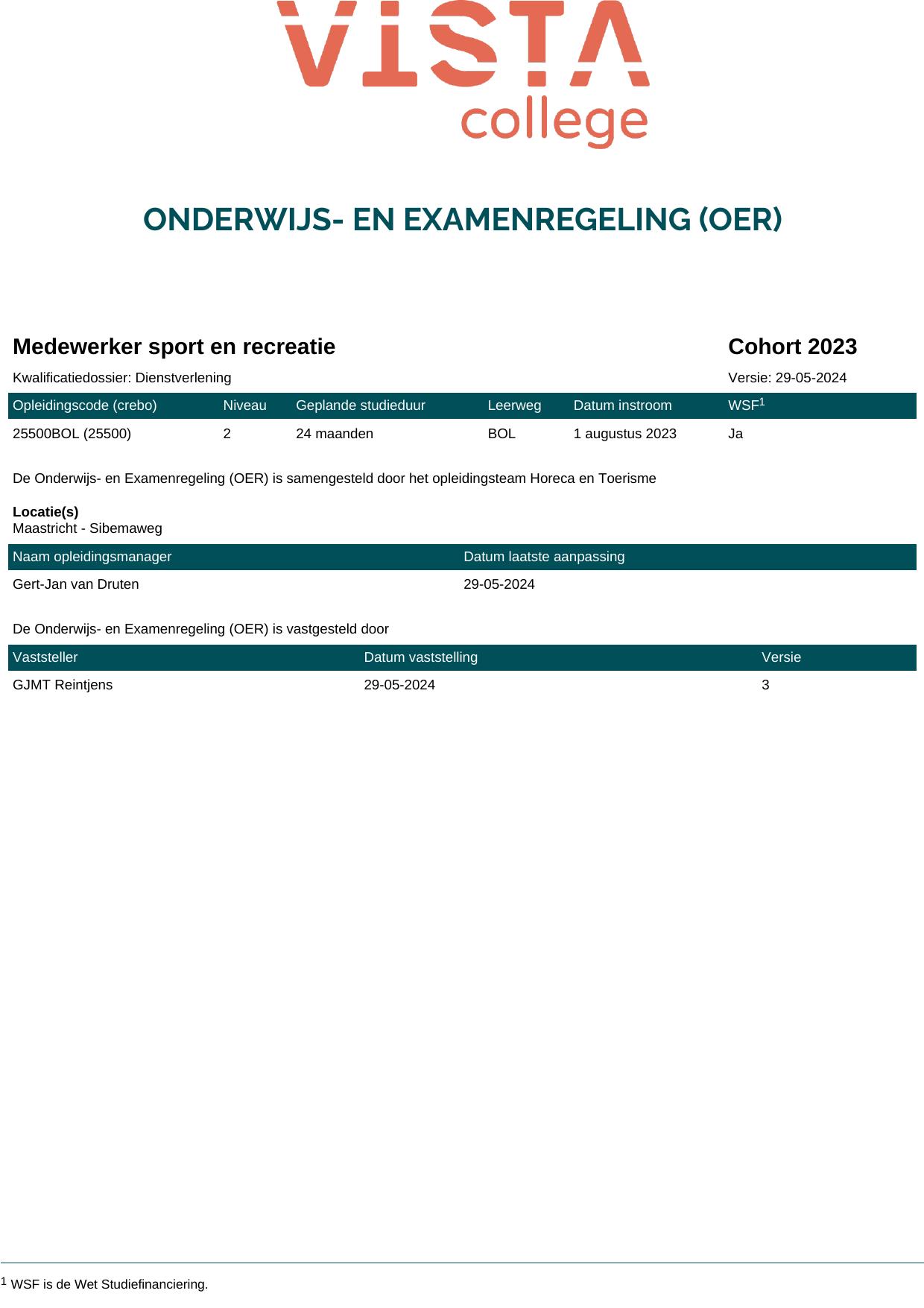 Medewerker sport en recreatie 25500BOL in cohort 2023-2024