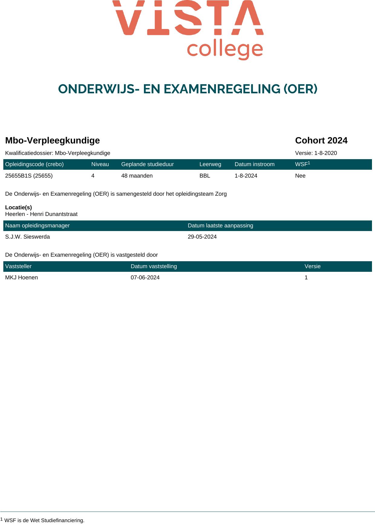 Mbo-Verpleegkundige Ziekenhuis 25655O5S in cohort 2024-2025