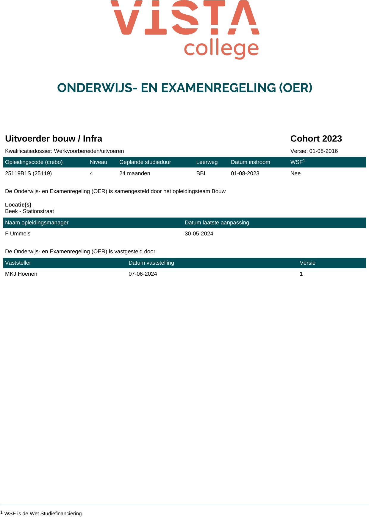 Uitvoerder bouw / Infra 25119B1S in cohort 2023-2024