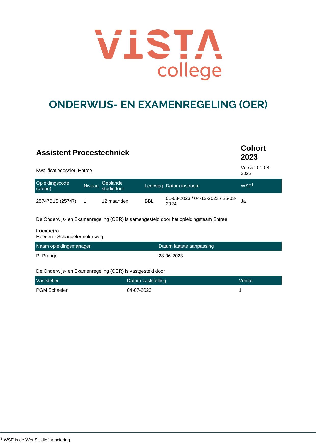 Assistent Procestechniek 25747B1S in cohort 2023-2024