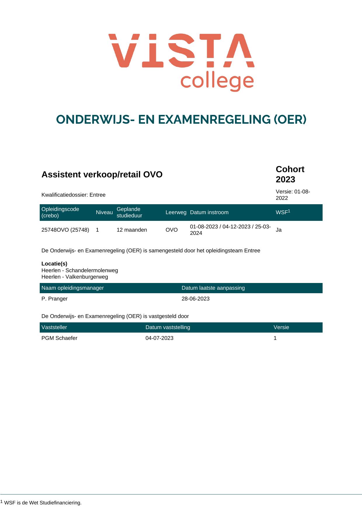 Assistent verkoop/retail OVO 25748OVO in cohort 2023-2024