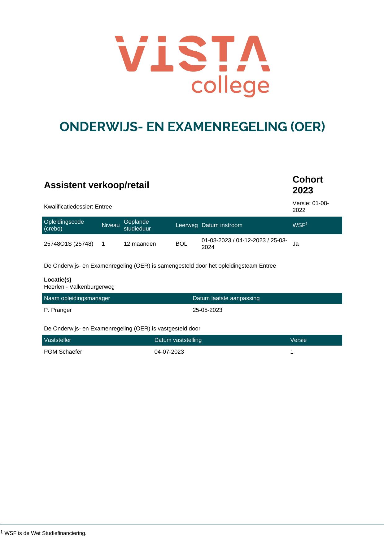 Assistent verkoop/retail 25748O1S in cohort 2023-2024