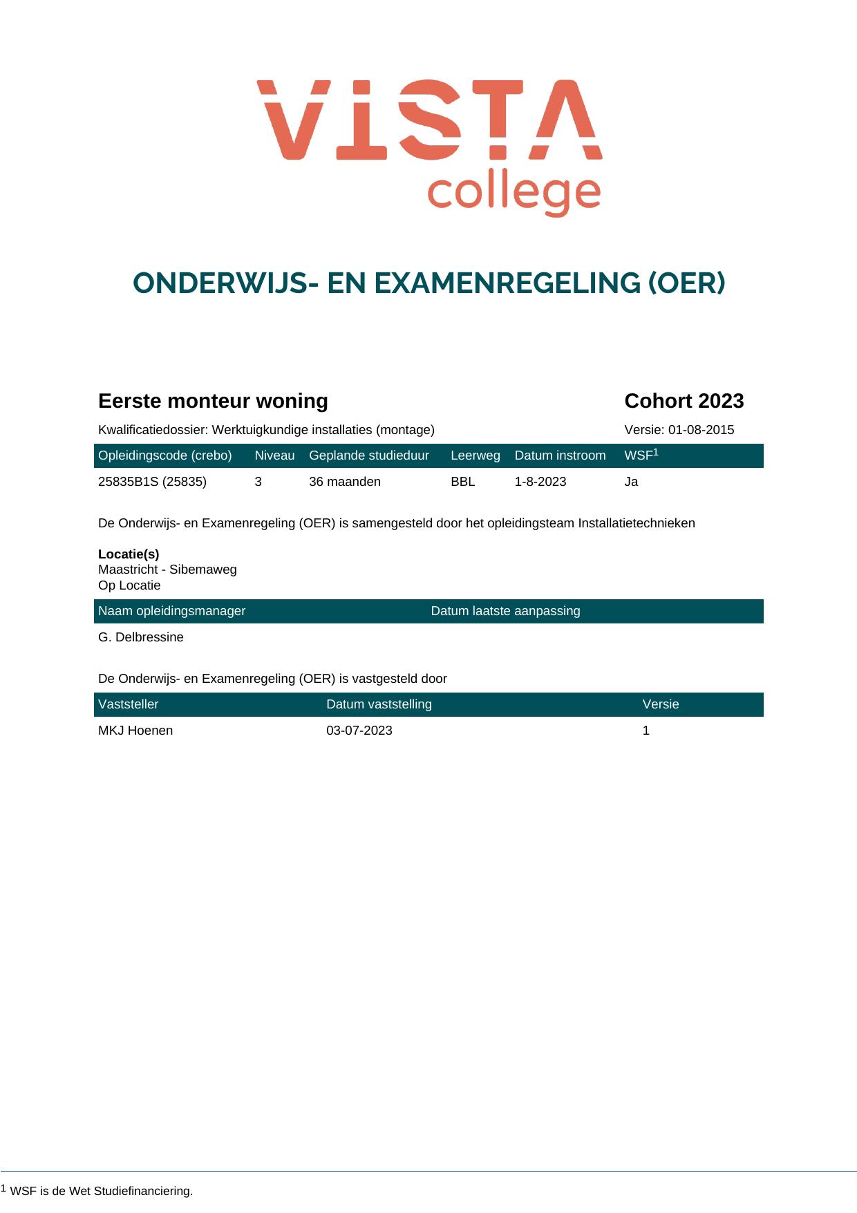 Eerste monteur woning 25835O1S in cohort 2023-2024