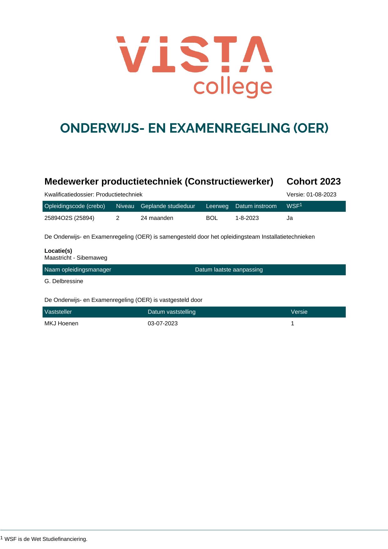 Medewerker productietechniek (Constructiewerker) 25894O2S in cohort 2023-2024