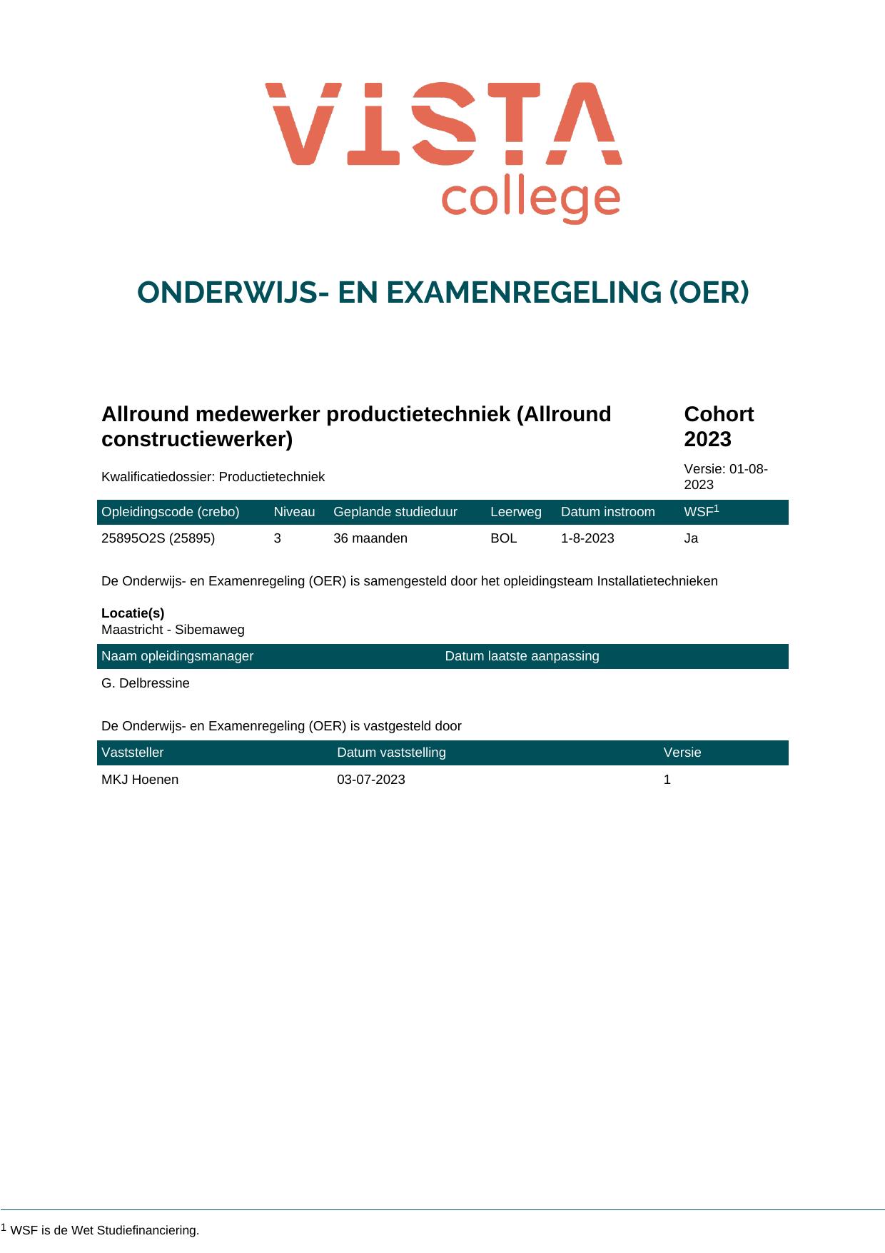 Allround medewerker productietechniek (Allround constructiewerker) 25895O2S in cohort 2023-2024