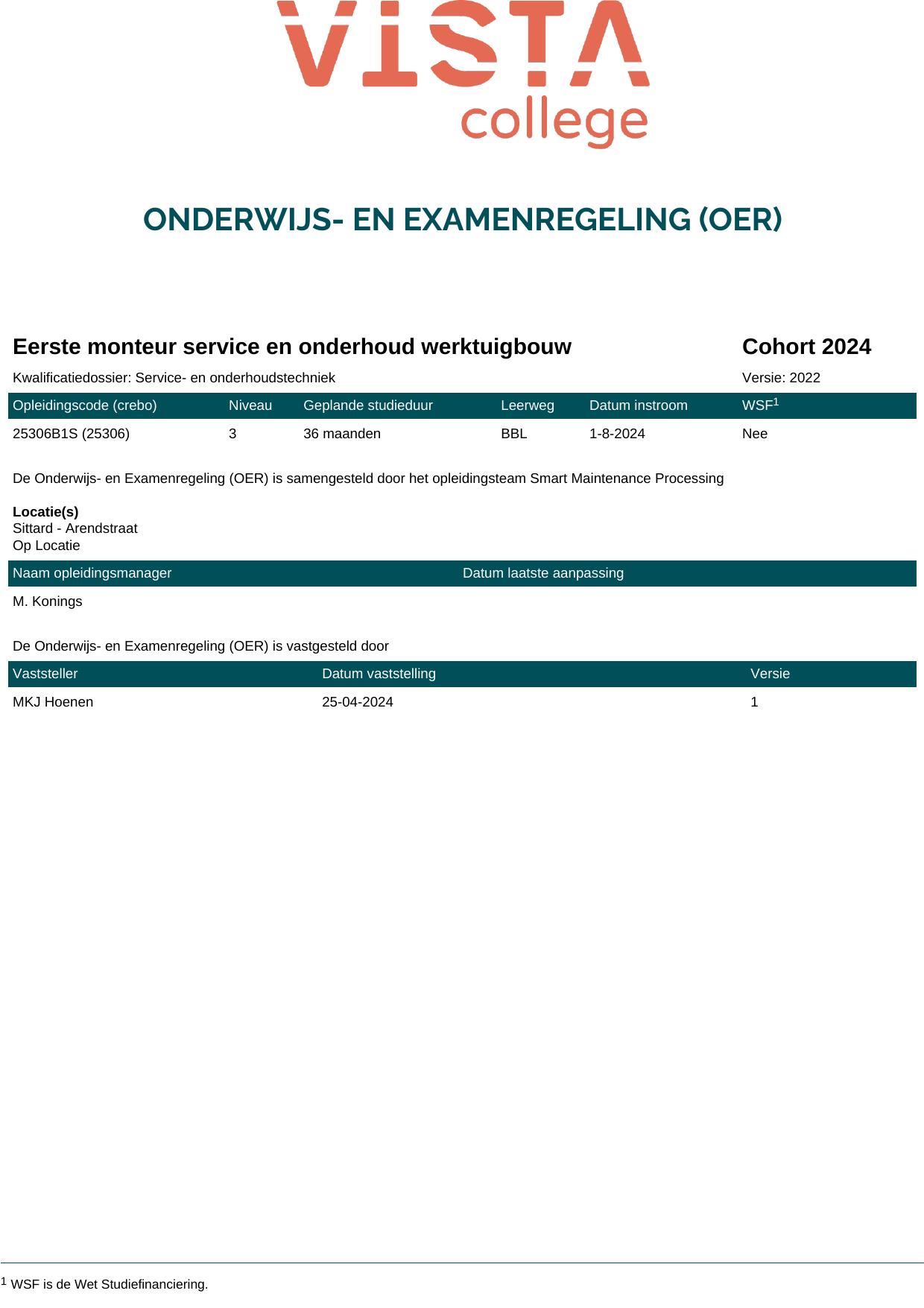 Eerste monteur service en onderhoud werktuigbouw 25306B1S in cohort 2024-2025