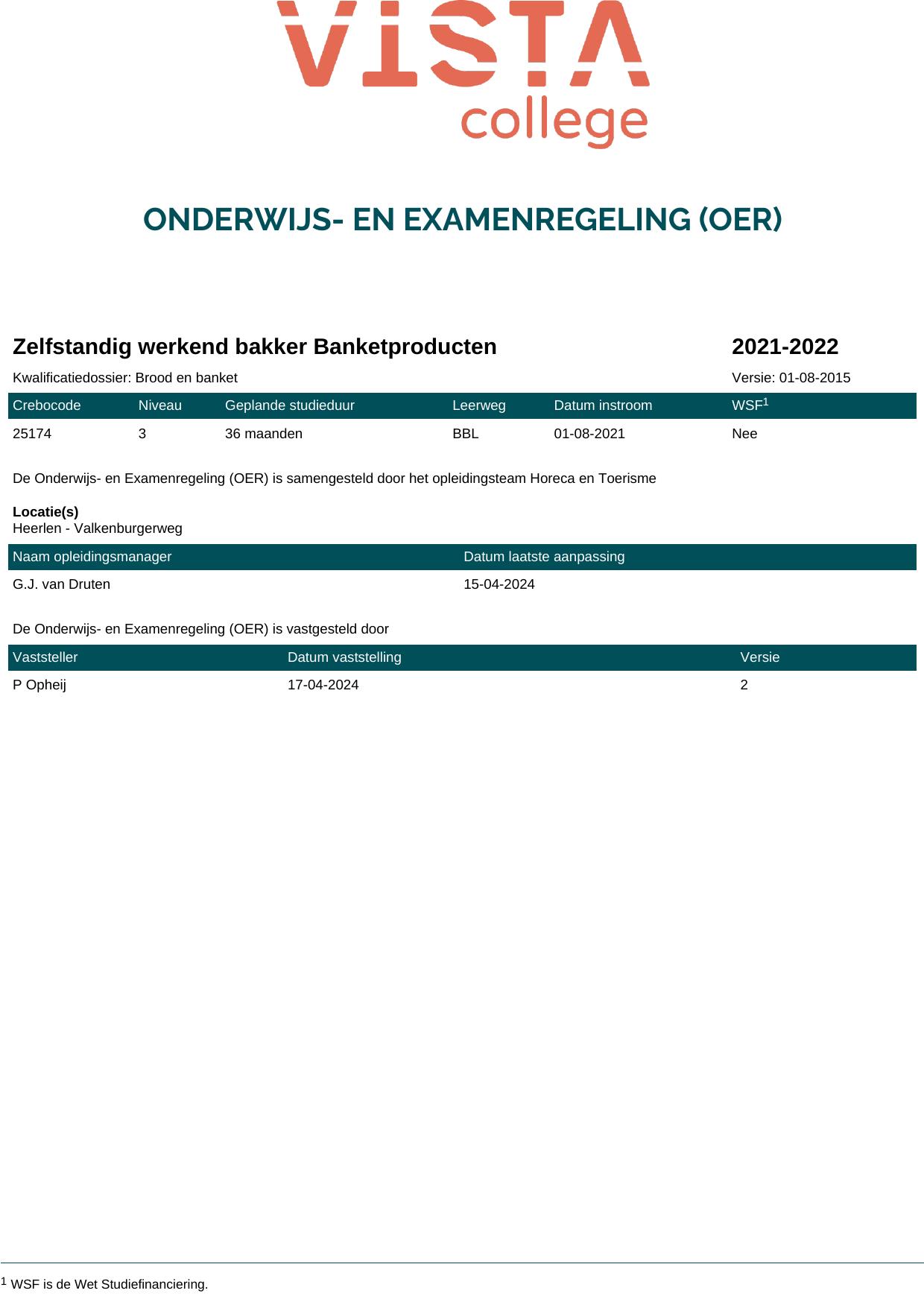 Zelfstandig werkend bakker Banketproducten 25174B3S in cohort 2021-2022