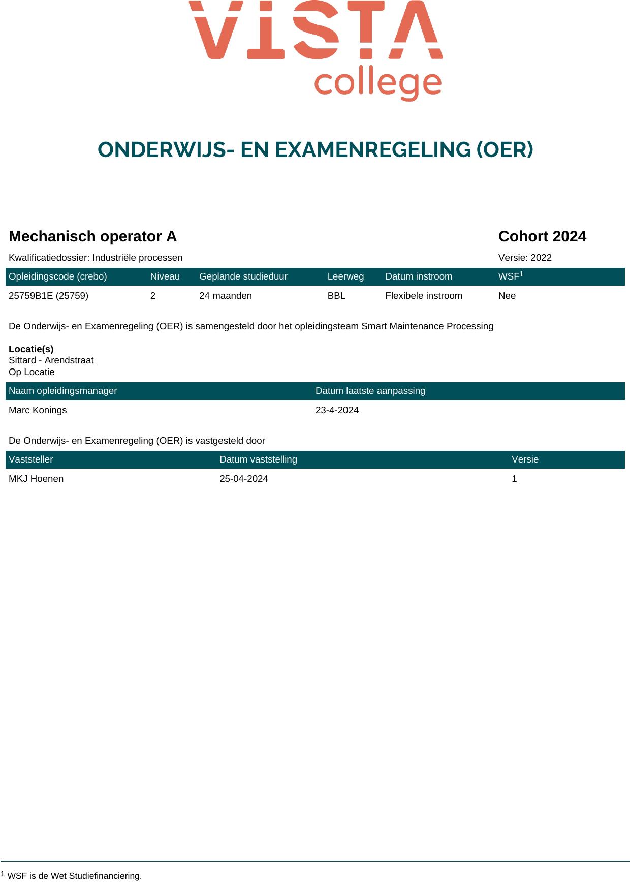 Mechanisch operator A 25759B1E in cohort 2024-2025