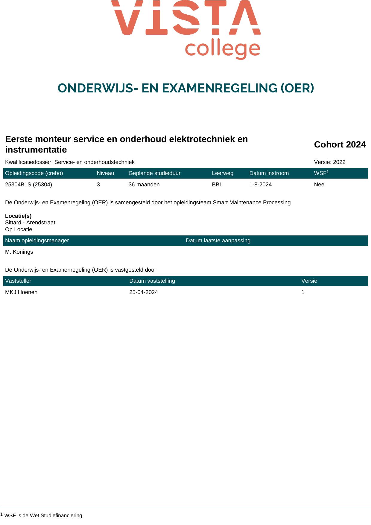 Eerste monteur service en onderhoud elektrotechniek en instrumentatie 25304B1S in cohort 2024-2025