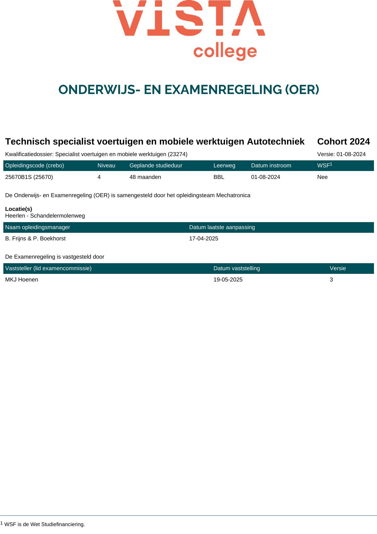 Technisch specialist voertuigen en mobiele werktuigen Autotechniek 25670O1S in cohort 2024-2025