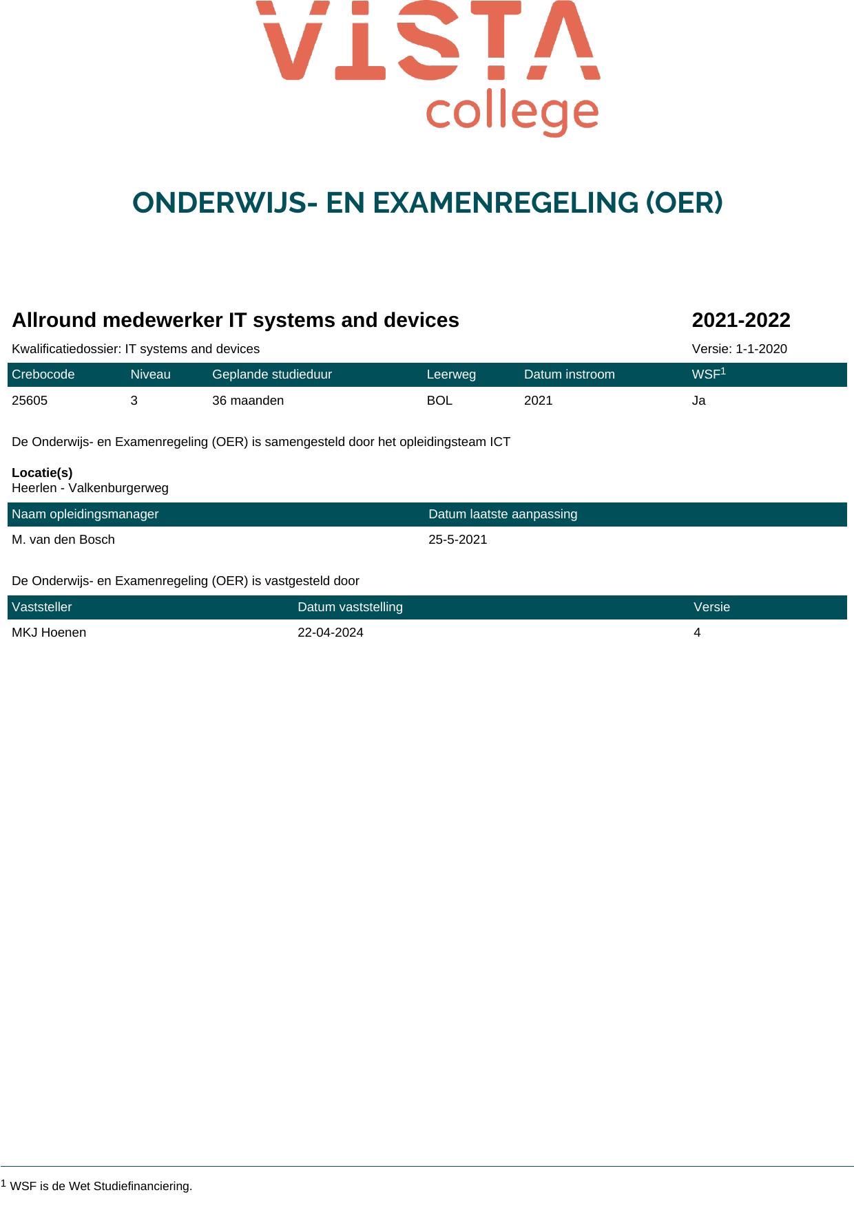 Allround medewerker IT systems and devices 25605O1S in cohort 2021-2022