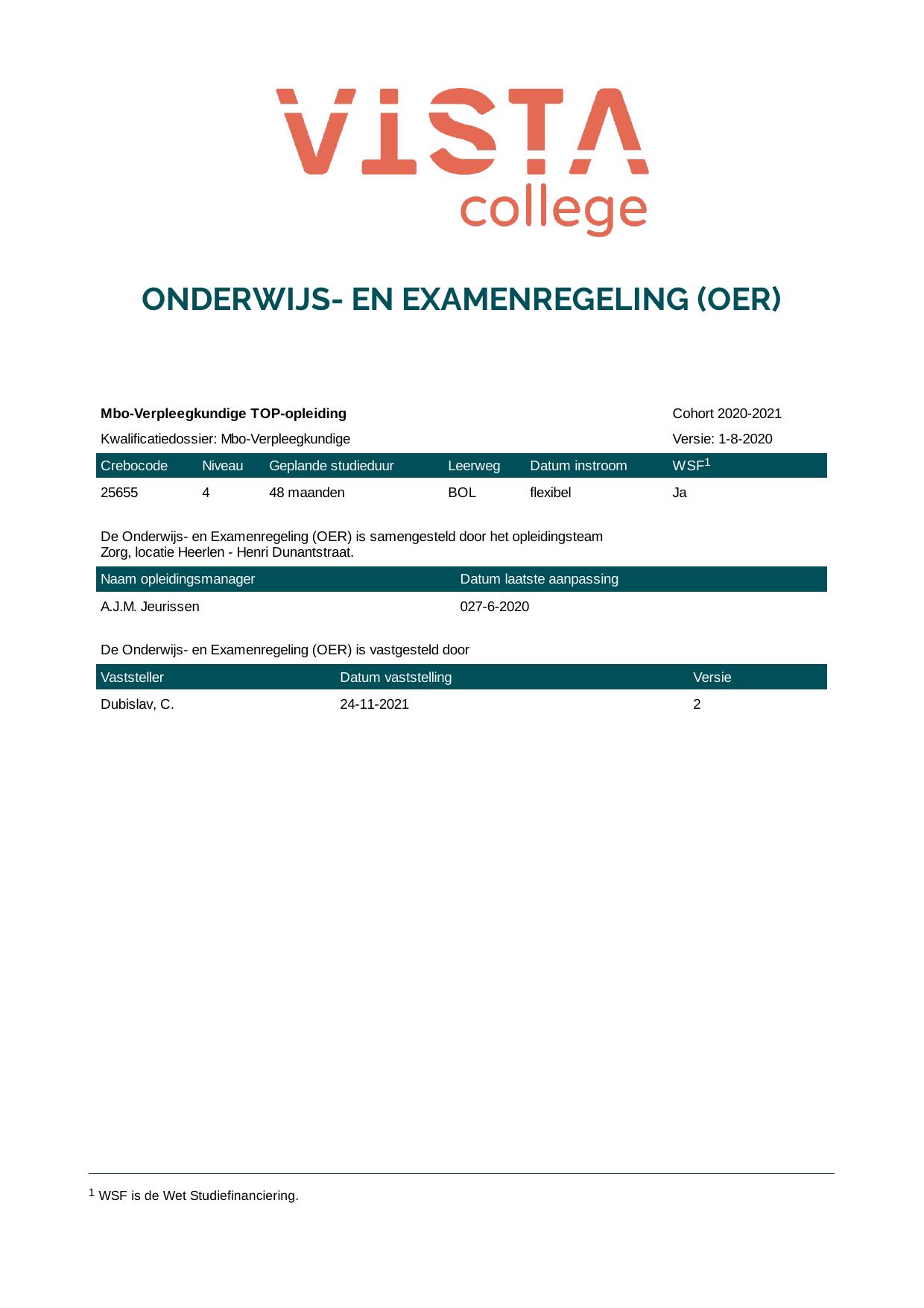Mbo-Verpleegkundige Ziekenhuis 25655B5S in cohort 2020-2021