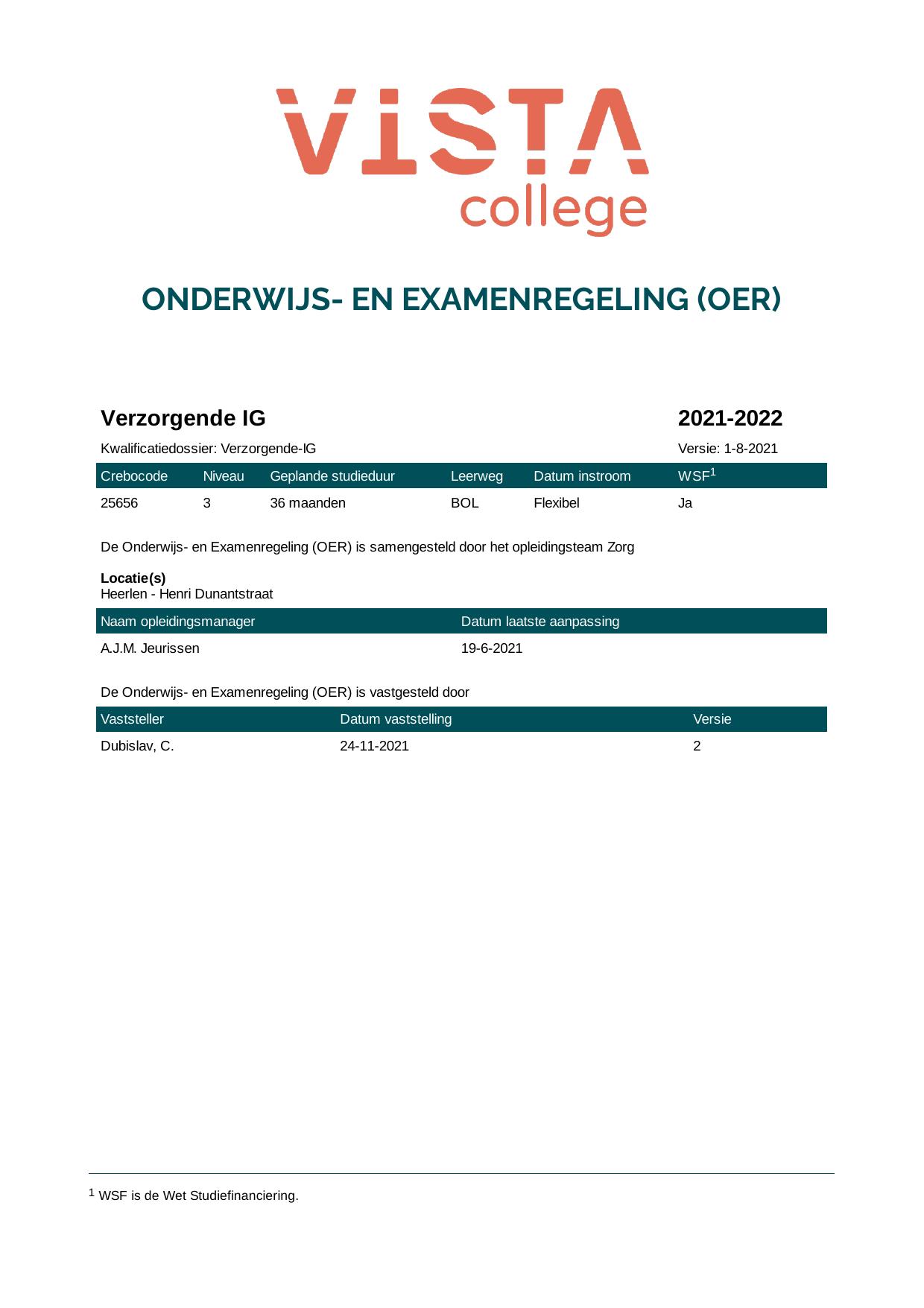 Verzorgende IG 25656O1S in cohort 2021-2022
