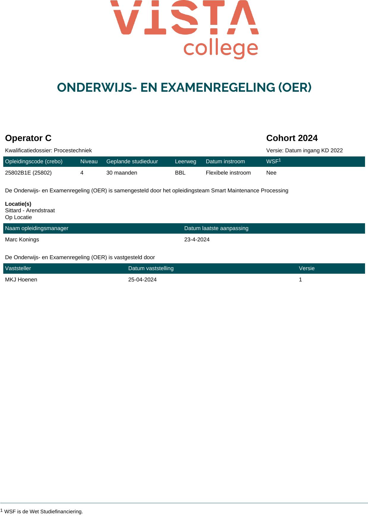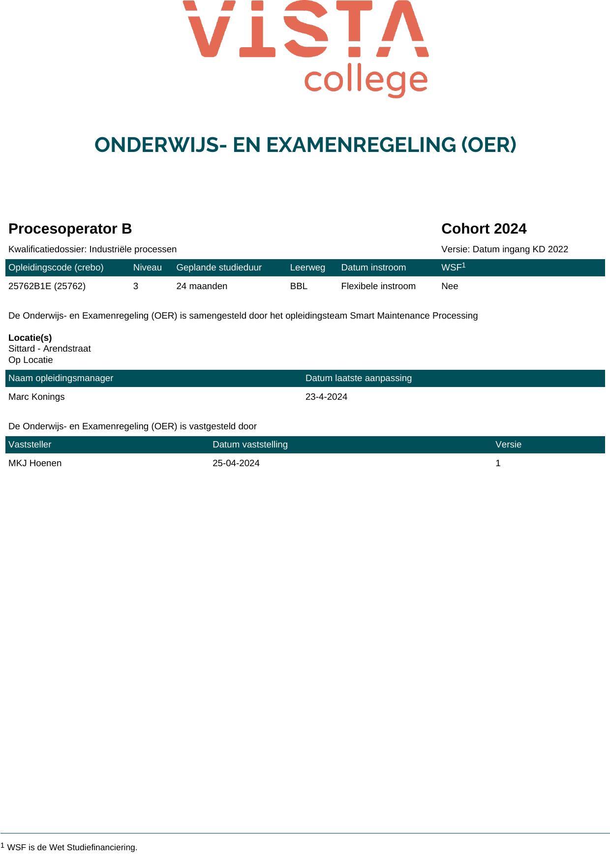 Mechanisch operator B 25760B1E in cohort 2024-2025